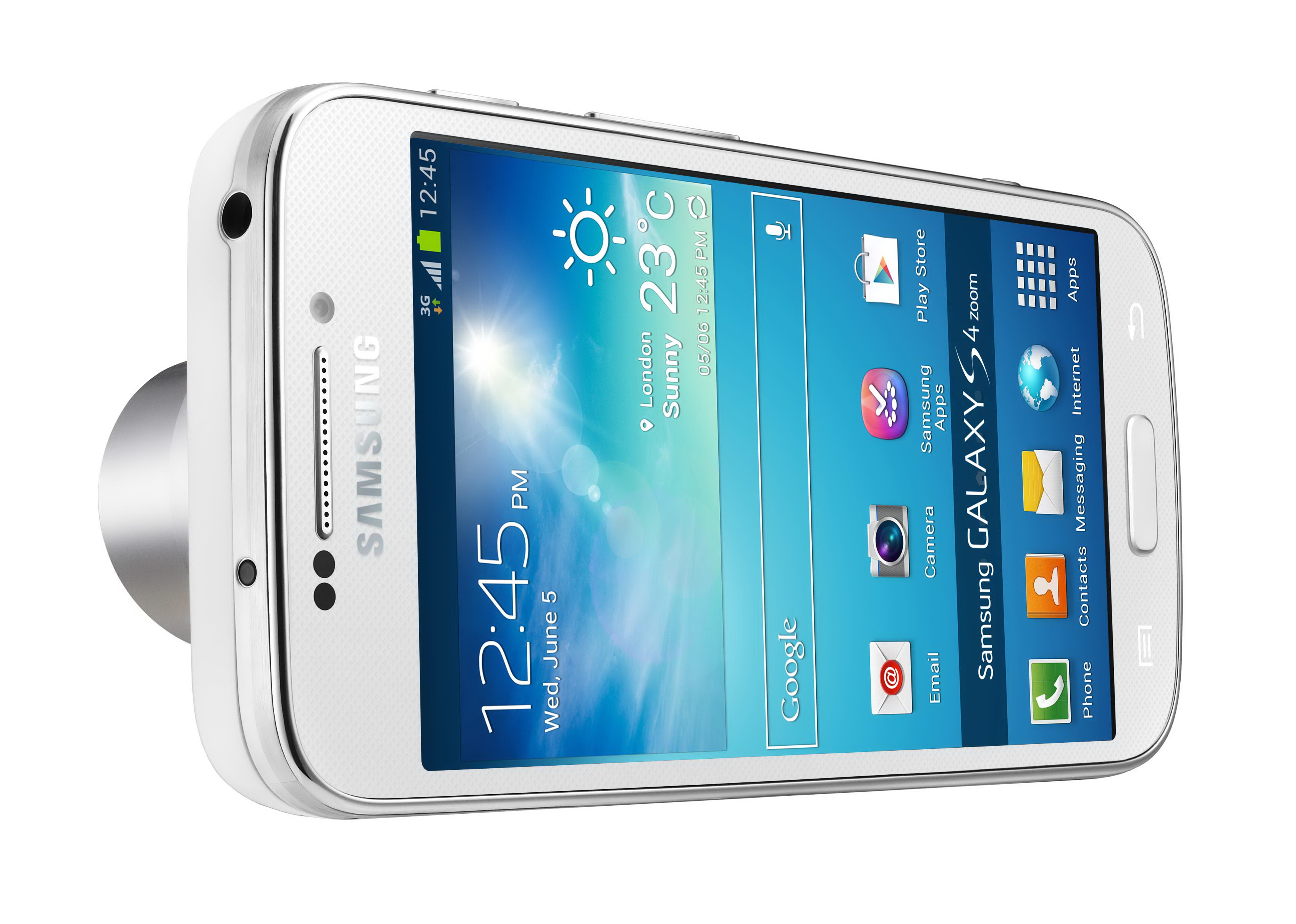Next up is the Galaxy S4 Zoom cameraphone, with 10x optical zoom as its main feature. We’ve also got a Xenon flash and a CMOS sensor with 16 megapixel resolution. LTE is among the specs as well, together with a Super AMOLED 4.3 inch qHD display, Android 4.2, a dual core 1.5 GHz processor, a 2330 mAh battery, 8 GB of storage and WiFi. There’s also 1.5 GB of RAM, a microSD card slot and camera features such as 3200 ISO levels, continuous capture with autofocus at 4 FPS.