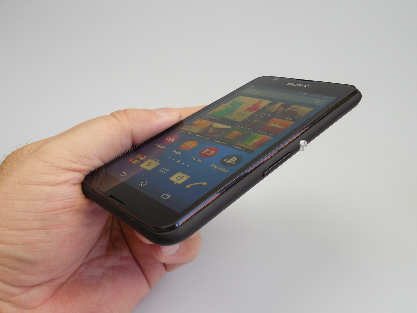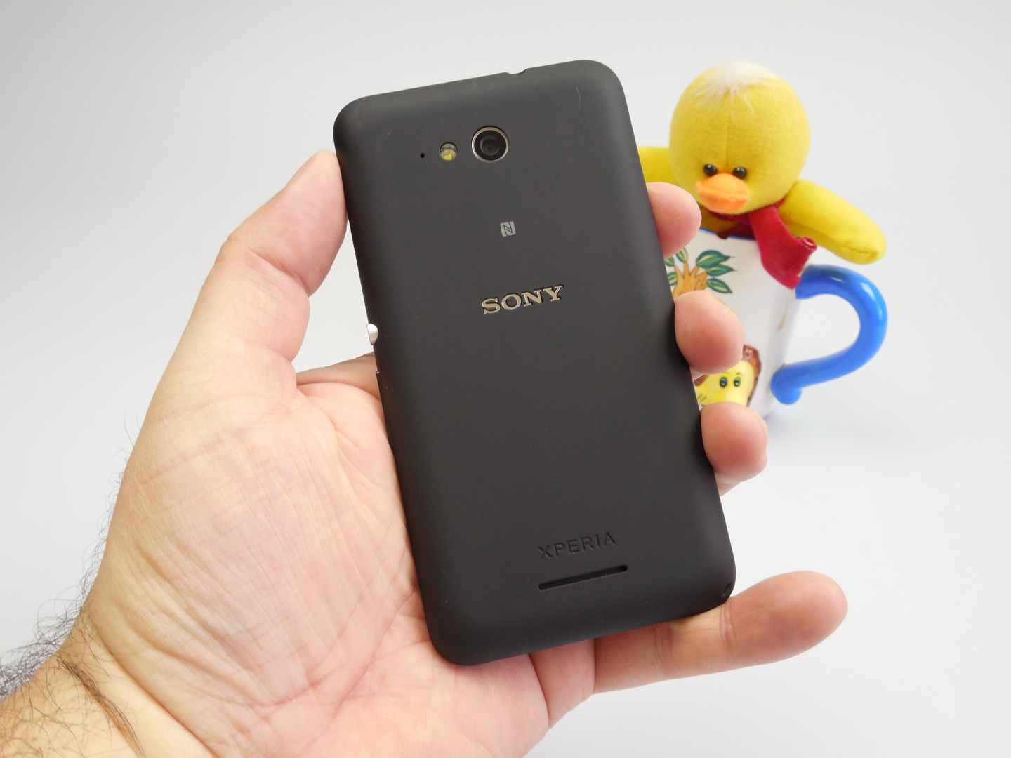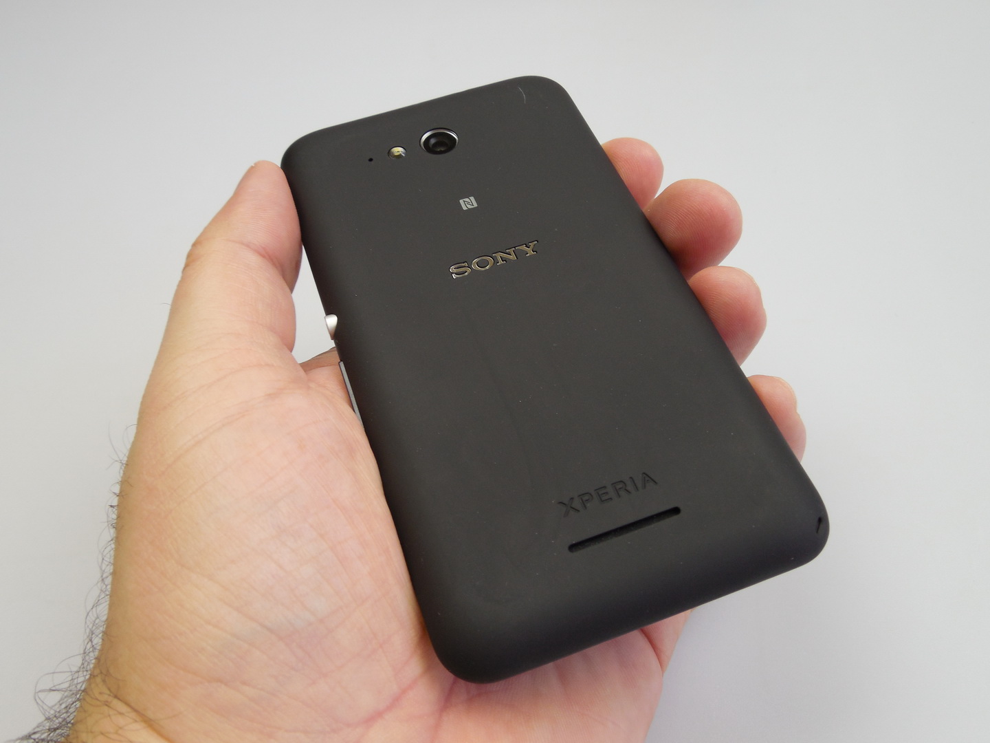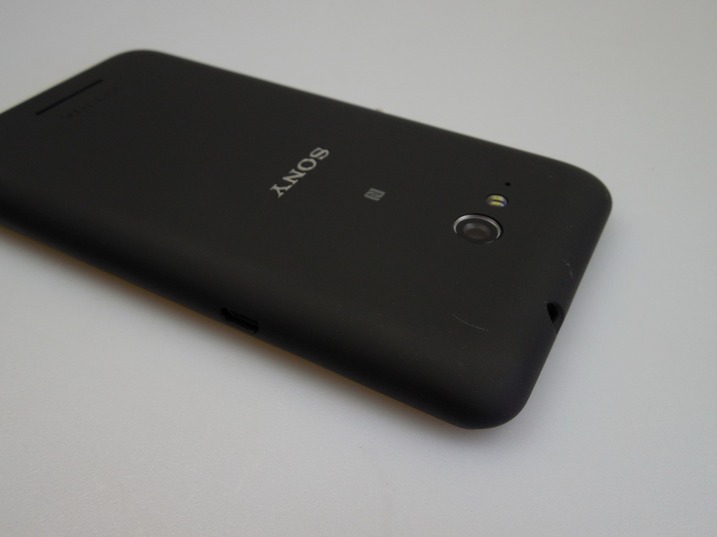 The device is priced at 129 euros in Europe and it’s a lower end Xperia with a budget price. The design involves a plastic case, with a soft touch back, that doesn’t feel as cheap as the one of the E4. We’ve got good grip and easy one hand use, probably because of the smaller diagonal (4.7 inch on the E4g versus 5 inch on the E4). The handset measures 10.8 mm in thickness, which is a bit thicker than the 10.5 mm of the Xperia E4.