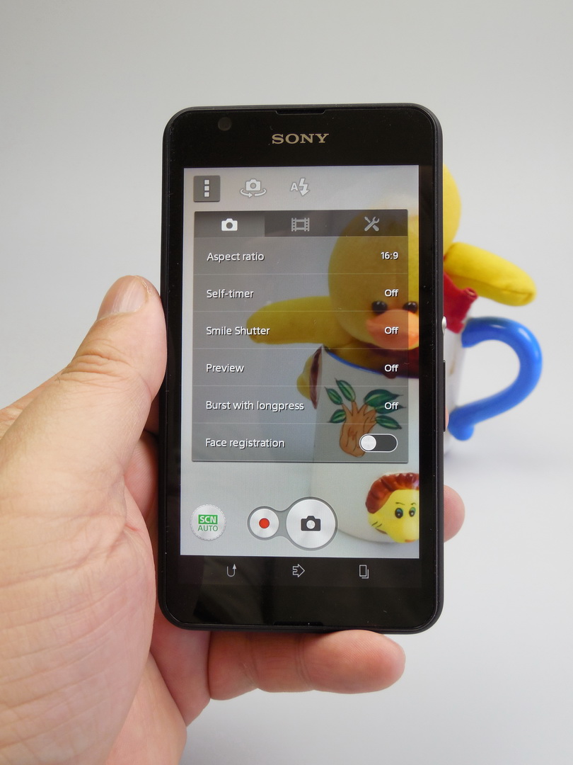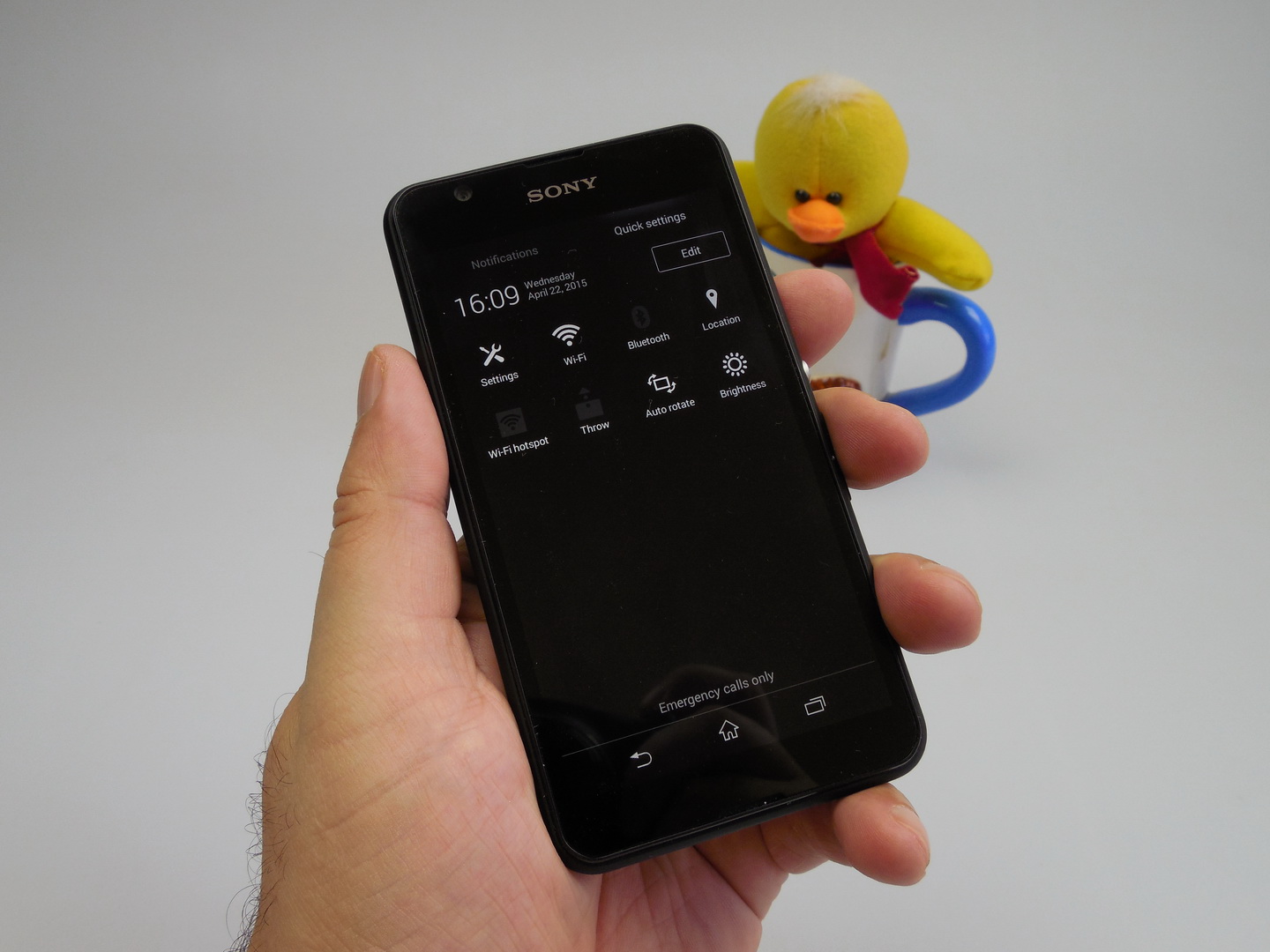 The back and front camera haven’t changed from the Xperia E4: a 5 MP shooter and 2 MP shooter, but the quality is a bit better. The back camera does 4X zoom, HDR and digital image stabilization. As usual with an Xperia, there are a ton of camera options, with augmented reality included, sound photo, manual mode with ton of scenes and much more. The zoom is now more fluid than on the E4, that had a bit of problem there.