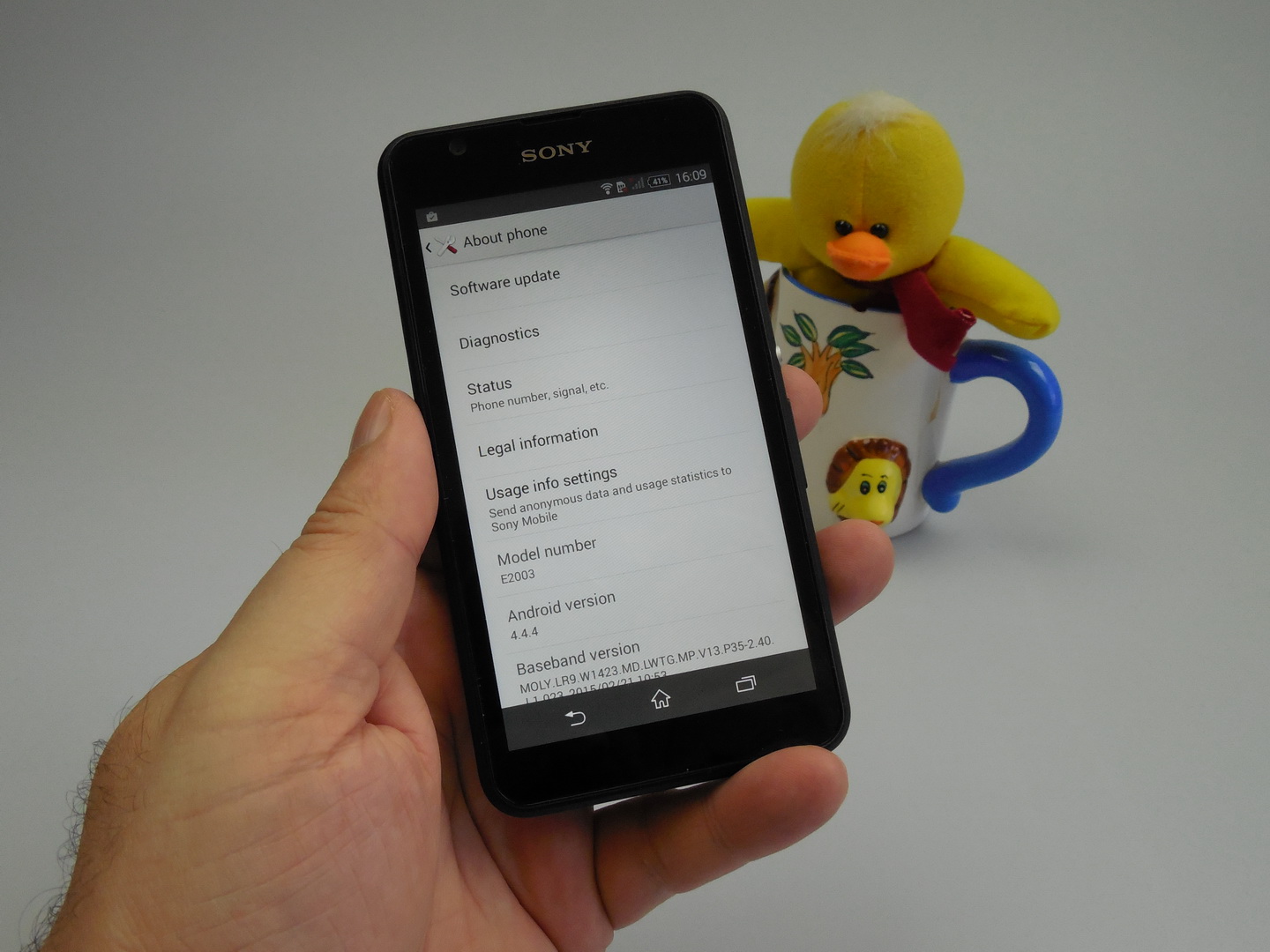 At the front there’s the selfie camera, notification LED and earpiece, while on the right we find the On/Off trademark button and volume buttons, both with good feedback. On the left there’s a microUSB port. Xperia E4g is not waterproof and it has rounded corners, plus it feels like an evolution of the E4. It’s both comfier and better looking. On the hardware side we’ve got a quad core Cortex A53 processor, clocked at 1.5 GHz, the Mediatek MT6752 (according to CPU Z), or the MediaTek MT6732 according to Sony’s site.
