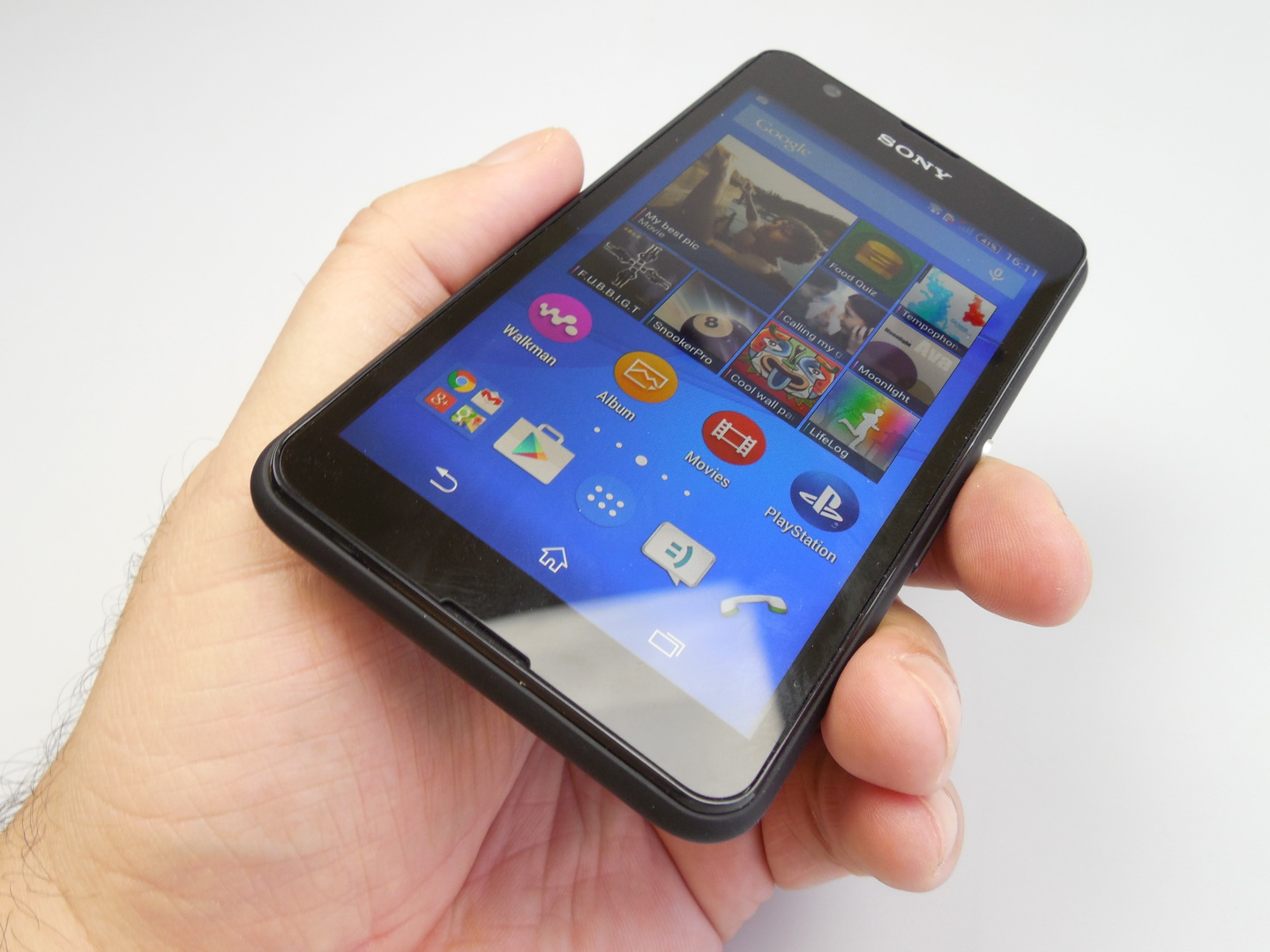 The web browser of choice here is Chrome, that’s pretty fast and this time the keyboard feels a bit cramped, on this smaller diagonal and low resolution. Sony Xperia E4g runs Android 4.4.4 and comes with virtual Android buttons, a custom Sony UI, that’s both flat and colourful, but less glossy than a few years ago. There are a few concepts that make the UI work: transparency, tiles (Walkman, Album and Video), unique widgets and that PlayStation vibe given by the backgrounds and icons.