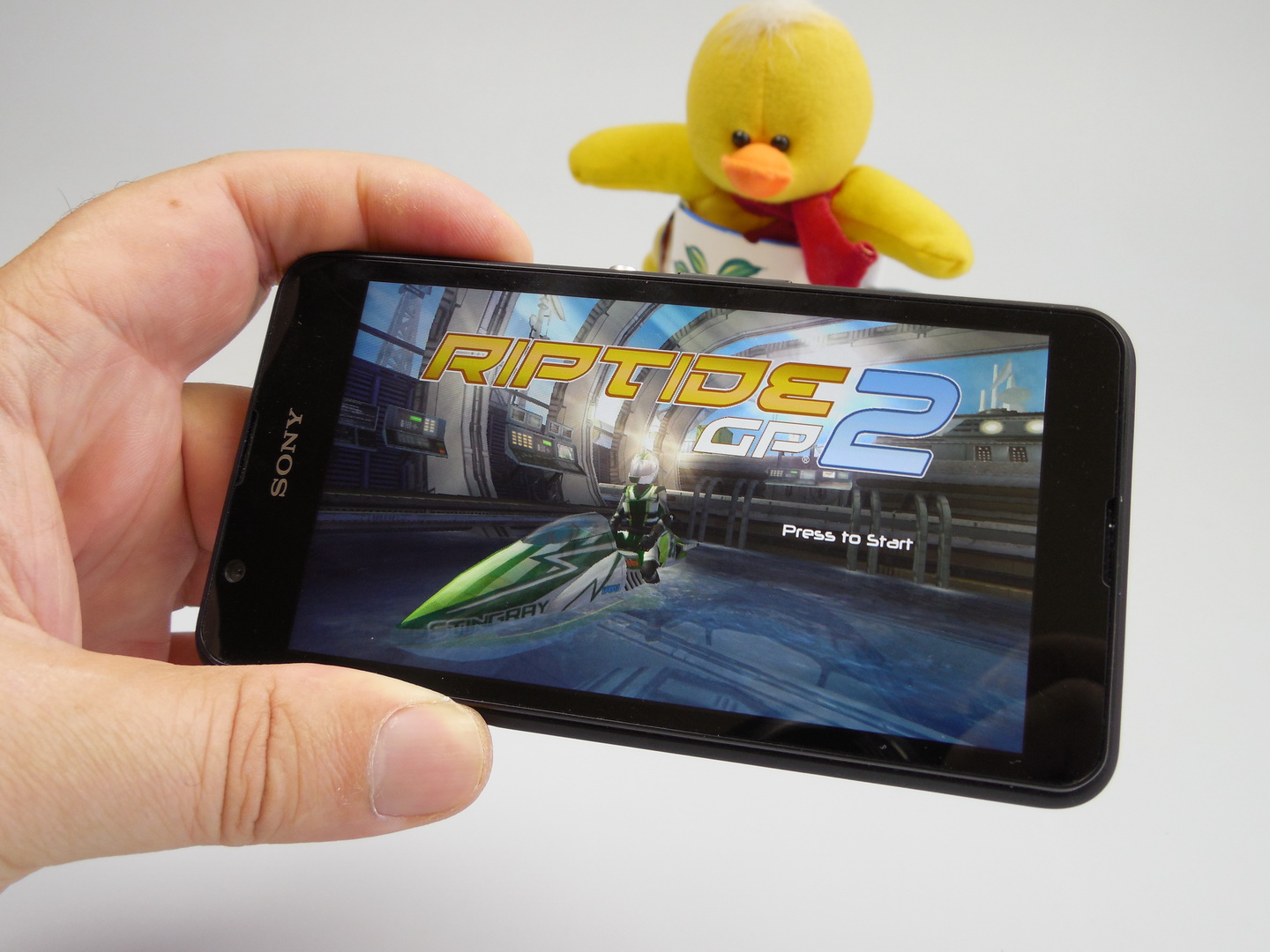 Games run OK and look fine on the smaller diagonal screen. There’s no overheating here, since after playing 15 minutes of the game Riptide GP2 we got to 33.3 degrees Celsius tops. The battery is a Li-Ion unit with a 2300 mAh capacity, the same capacity of the E4. On paper this battery offers 64 hours of music playback now, a bump from the 48 hours of the E4.