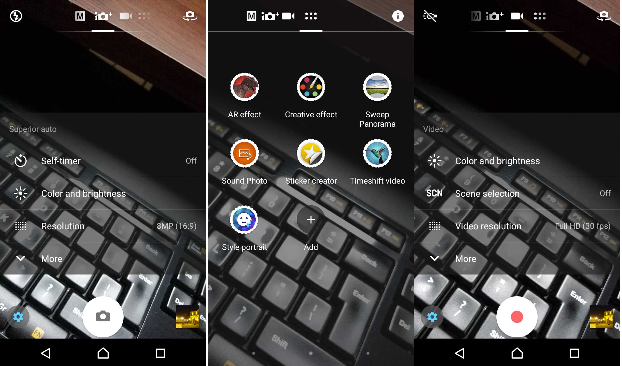 The camera app starts up fast and the cam offers mid level autofocus, OK touch focus and fluid zoom up to 8X. The camera UI is the same one from the Xperia XZ and picture taking is a bit on the slow side. The main modes are Superior Auto, which also has options for color and brightness, as well as resolution (23 MP in 4:3 or 20 MP in 16:9 for example).