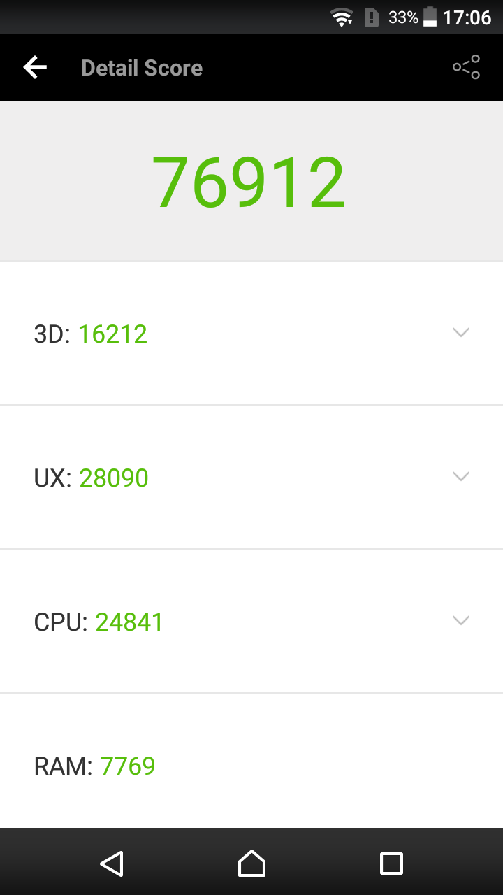 3DMark Ice Storm Unlimited places the phone above the Galaxy S5 and below the Lenovo Vibe X3, while in GeekBench 3 we beat the ASUS ZenFone 3 in the single core test. The temperature reaches 40.6 degrees after playing the game Riptide, which is a bit high, but not exaggerated, plus 33.1 degrees Celsius after running GFXBench.