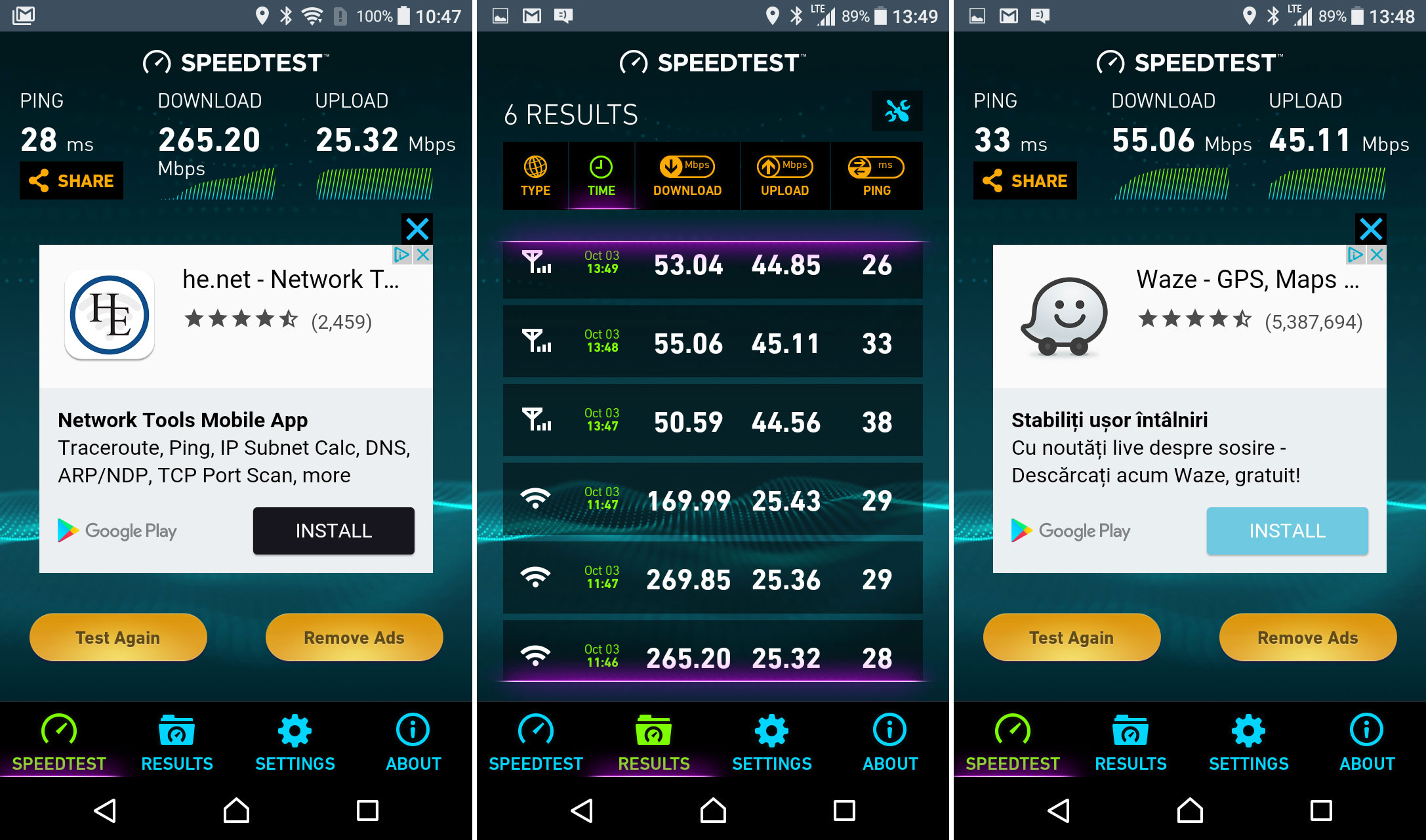 WiFi a/b/g/n/ac and USB Type C are included among the connectivity options and moving on to calls, we got smart call handling here, loud and clear calls, plus pretty good signal. The microphone was solid and we’re actually dealing with two noise cancelling mics. We also did a SpeedTest, with excellent results, including 269 Mbps in download speed on WiFi and 25 Mbps in upload. 4G brought a 45 Mbps download speed and 45 Mpbs upload, being a bit of a letdown, compared to the excellent WiFi.