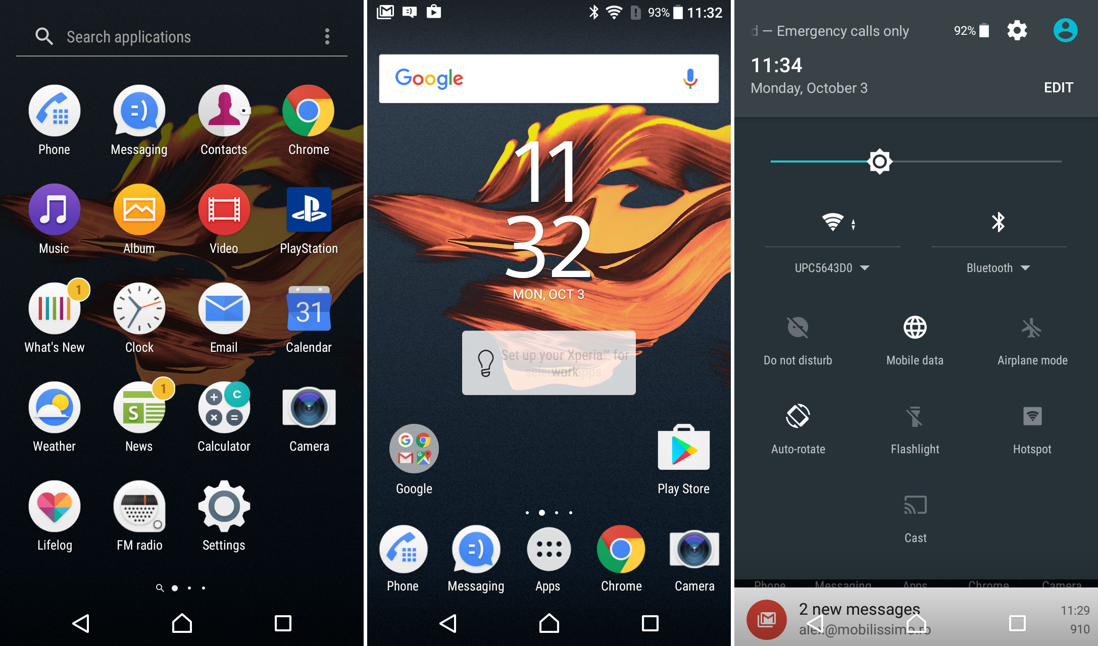 Xperia X Compact runs Android 6.0.1 Marshmallow, with the typical Xperia UI on top, which means it’s a flat and colorful experience, filled with side menus. It’s the same experience as on the Xperia XZ by the way. Multitasking is done via a carousel and the leftmost homescreen is dedicated to Google Now. Swiping down on homescreens triggers a search, while keeping a homescreen pressed offers up widgets, many of them non stock and pretty complex looking.