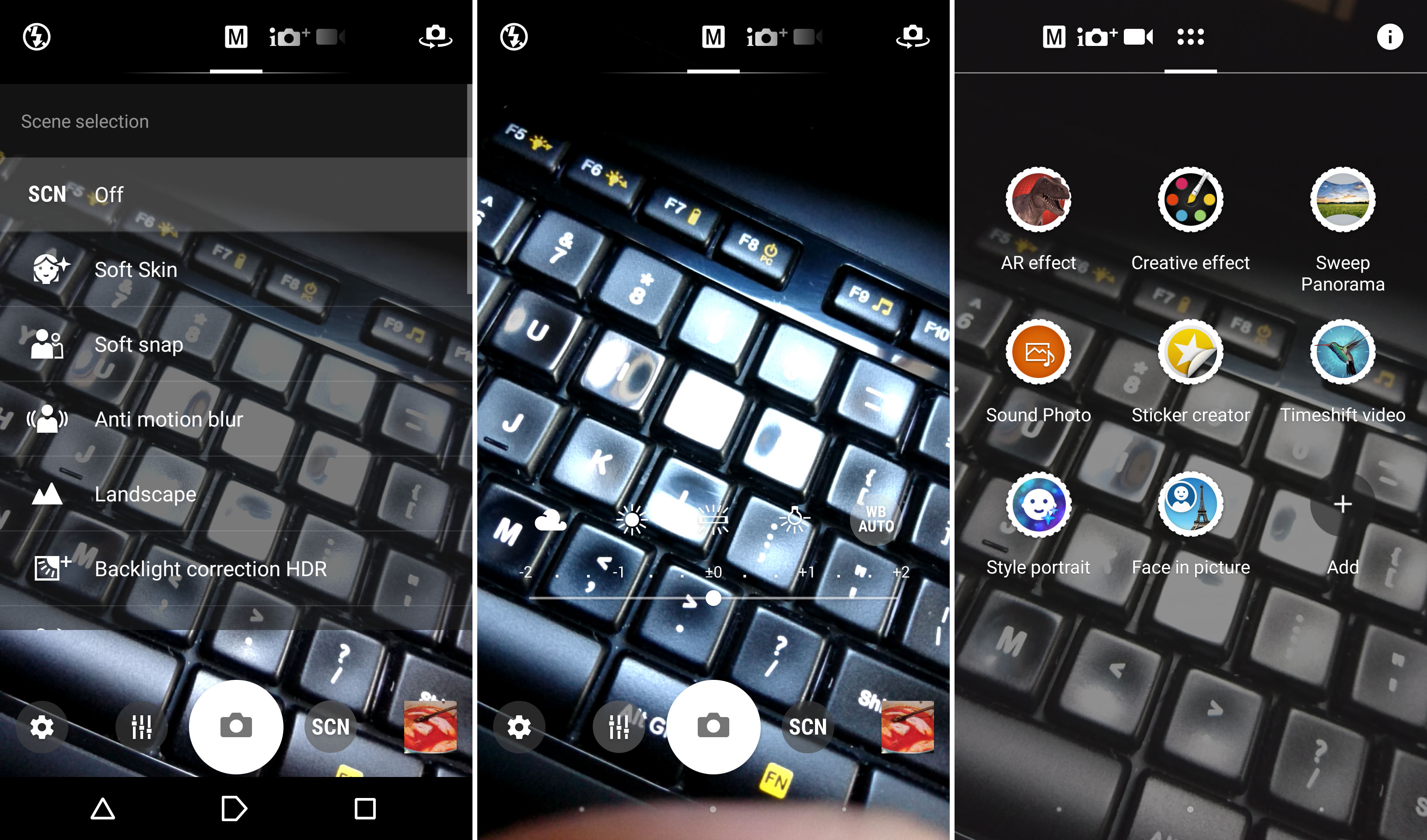 Upfront there’s a 13 MP front camera with 1/3 inch Exmor RS sensor and 22 mm wide angle lens. F/2.0 aperture is also here, as well as Full HD video capture. The camera UI is rather typical for Sony and the camera app starts up fast. The physical camera button has a two step pressure level and it provides improved focus. Picture taking is a bit slow, I have to admit.