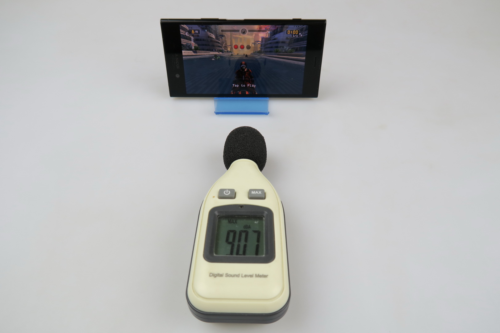 We also did a decibelmeter test and achieved an 80.4 dBA value at the top of the phone and 79.9 dBA at the bottom of the phone. Those are achieved with our typical acoustic test sample, but music and gaming are a whole different story. We achieved 90.7 dBA in Riptide GP Renegade, which I have to admit is not a very impressive value, since most of the phones we test already go past 94 dBA nowadays.