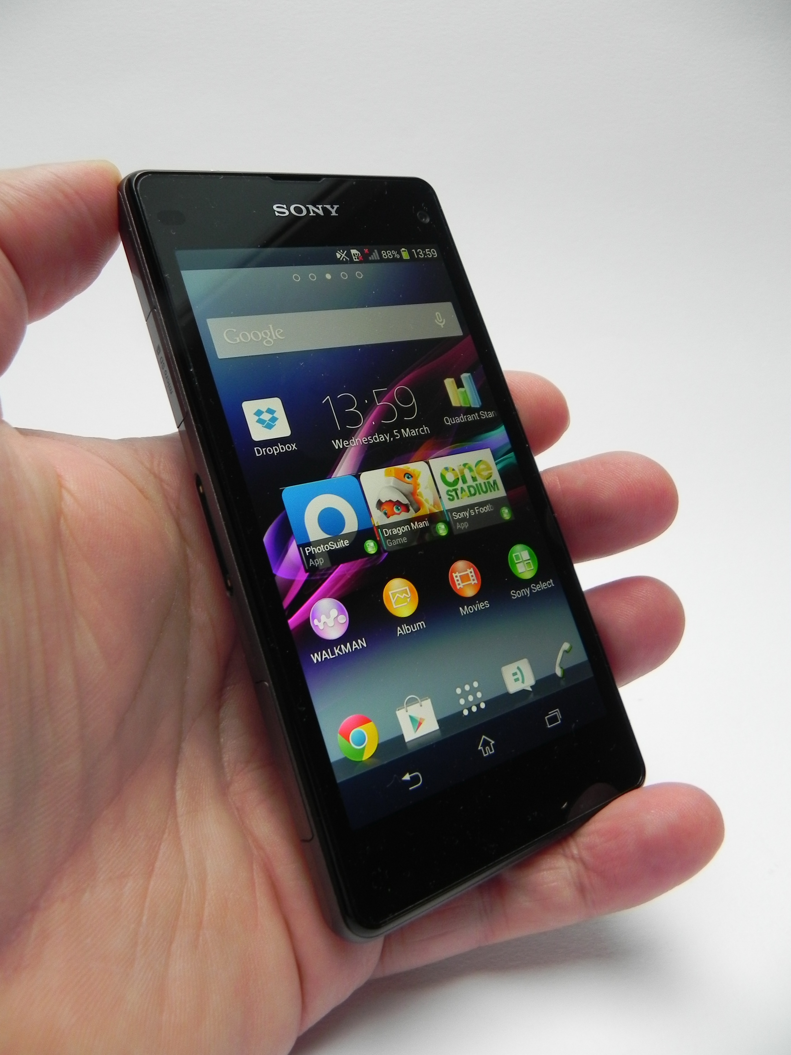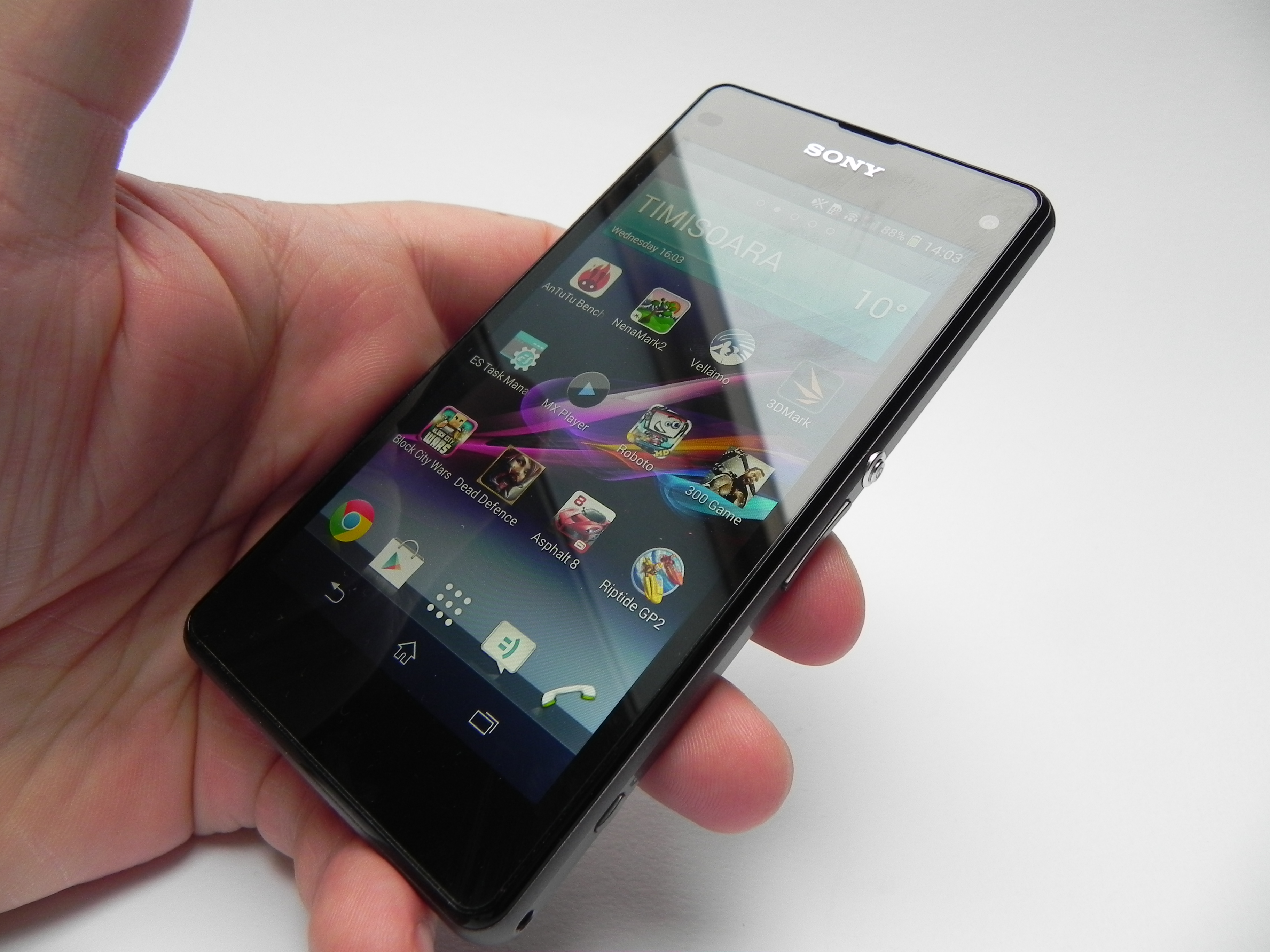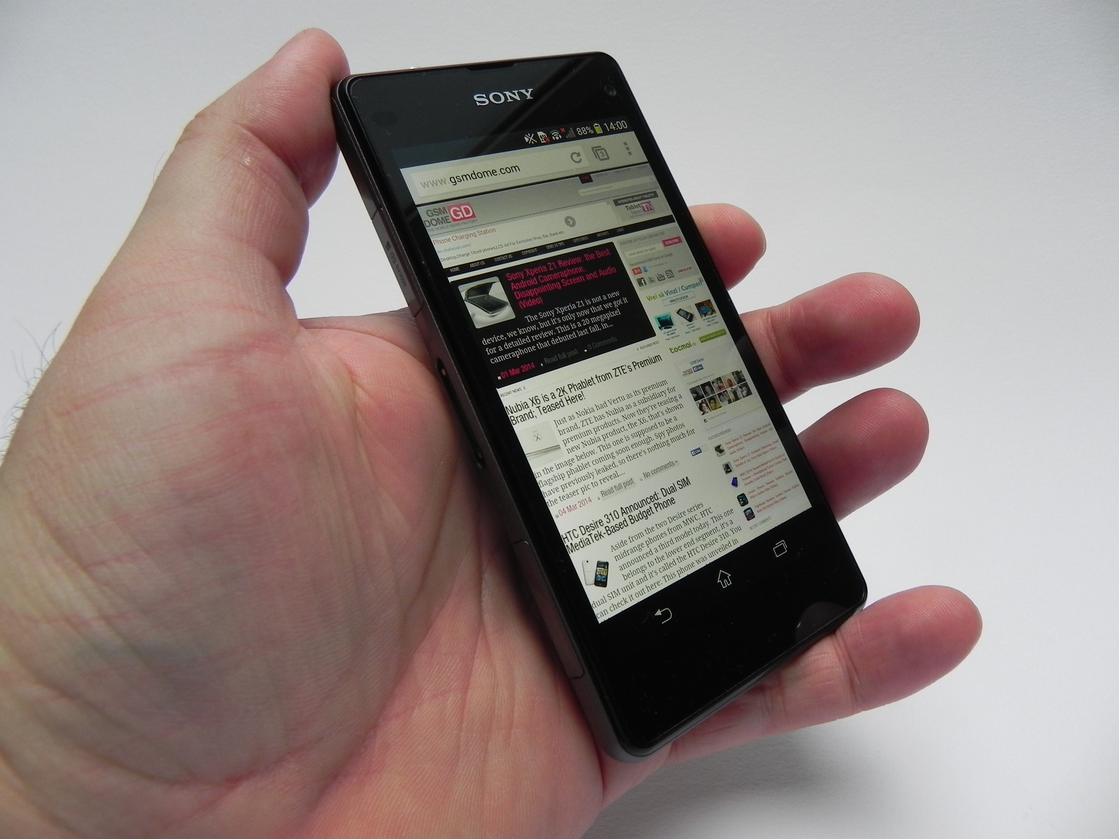 While the pictures beat the flagships of 2013, the videos don’t, sadly. Also, this camera is about 10% inferior compared to the Z1 camera. Sony Xperia Z1 Compact hits 41.8 degrees Celsius after 15 minutes of Riptide GP2 gaming, which is huge and means that the device gets very hot. The browser of choice here is Chrome and it’s pretty fast, as confirmed by benchmarks. The virtual keyboard is pretty cramped on the tiny screen, but somehow the keyboard of the iPhone manages to be more comfy on a smaller screen, so Sony fails here.