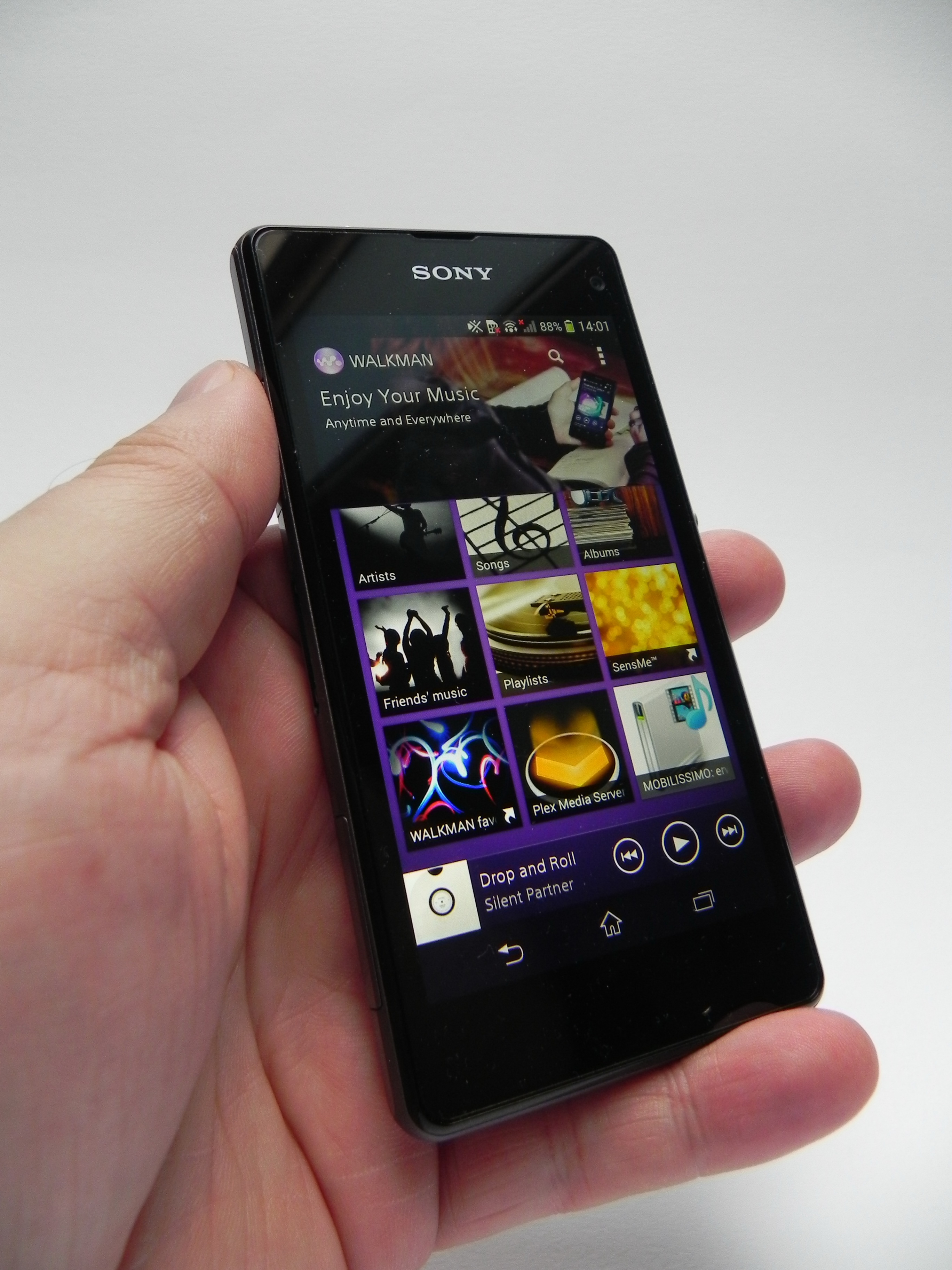 It’s even better than some high priced 5 inch devices out there. The Nexus 5 for example offers 4 or 5 hours of playback, which is a bummer. Overall, the Xperia Z1 Compact offers you about a day and a half of moderate use. It takes 2 hours and 20 minutes to charge its battery to the max level. So, the conclusion is that the battery is quite good. Now, on the audio side, there’s the famous Walkman player, with its interesting UI and options like Clear Audio+, for a sound that’s better suited for each song you play.