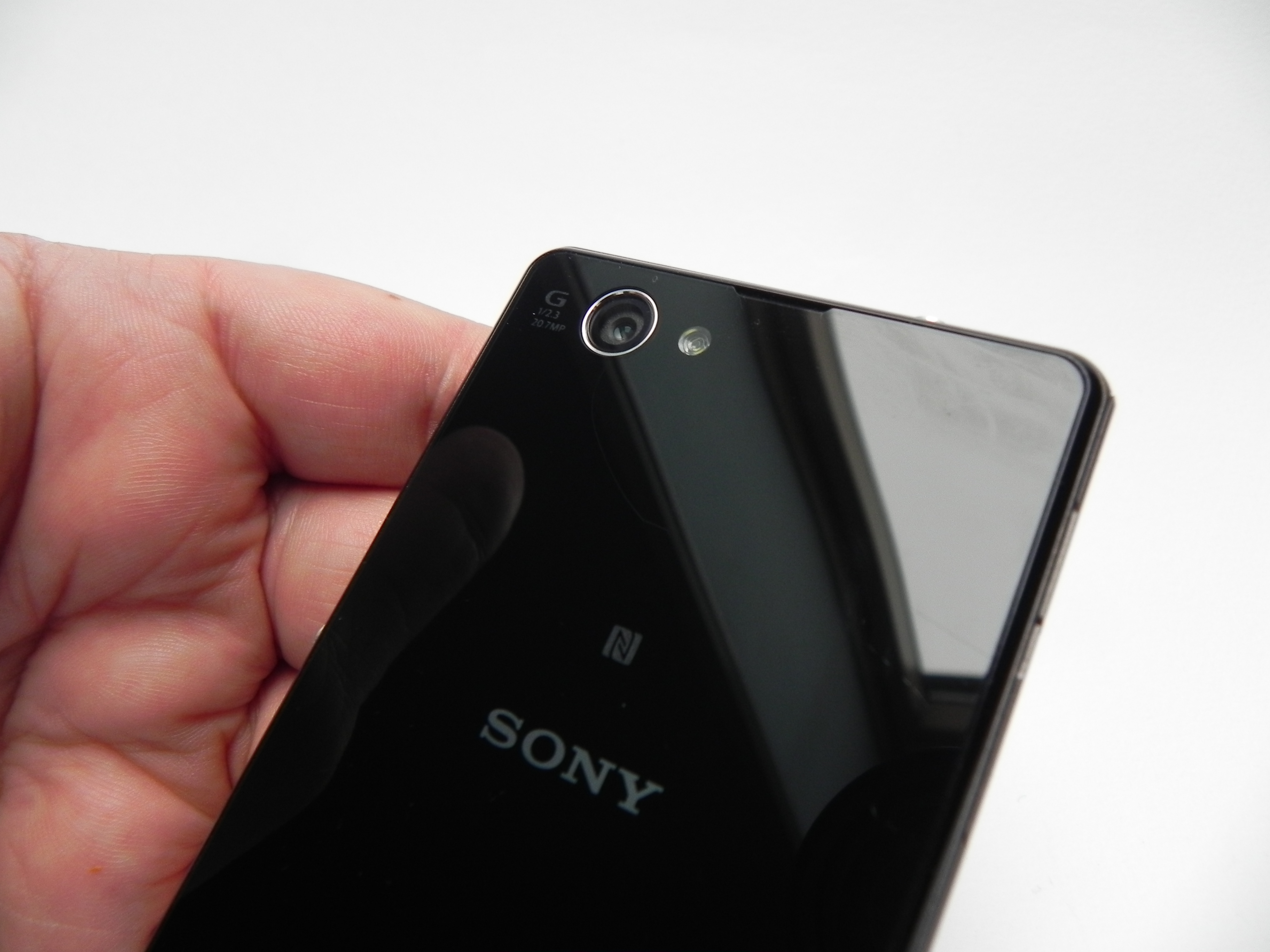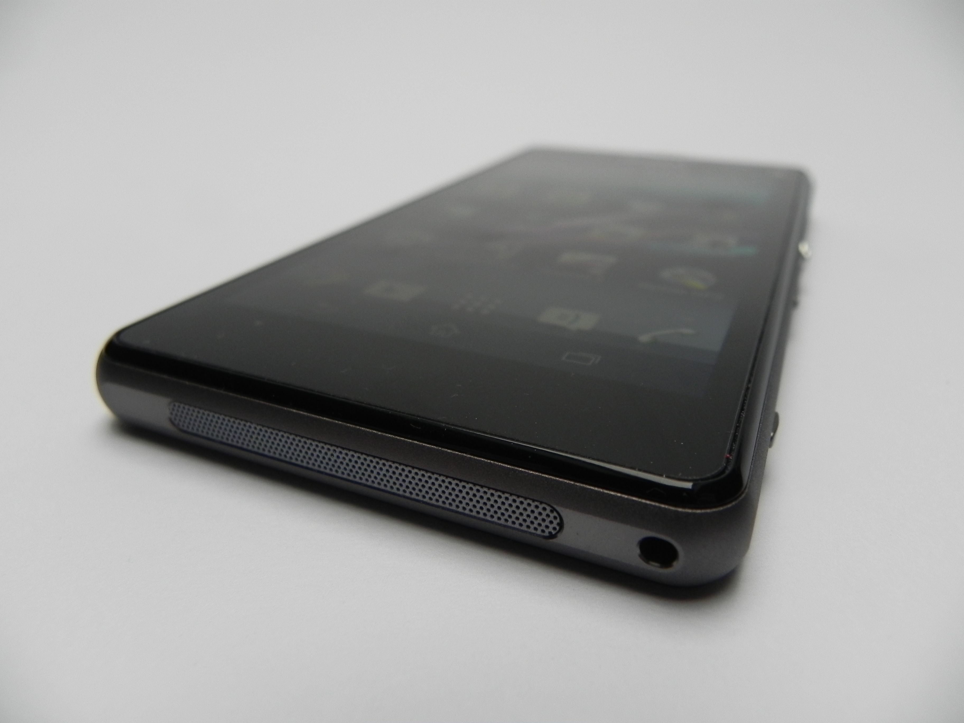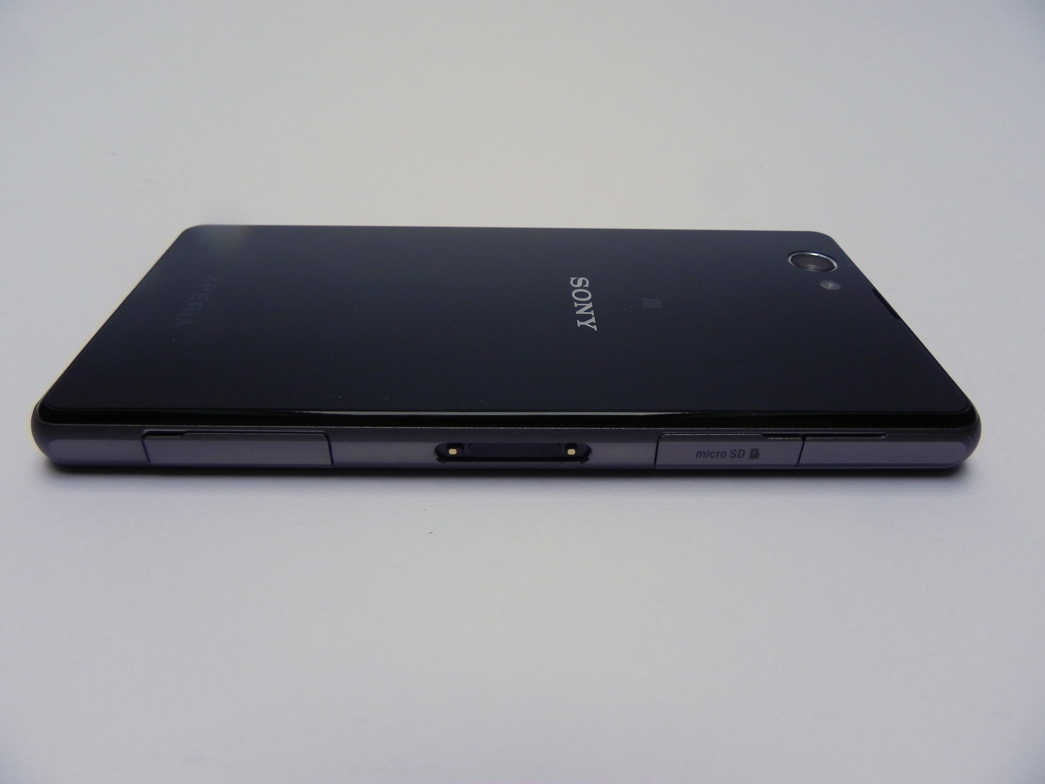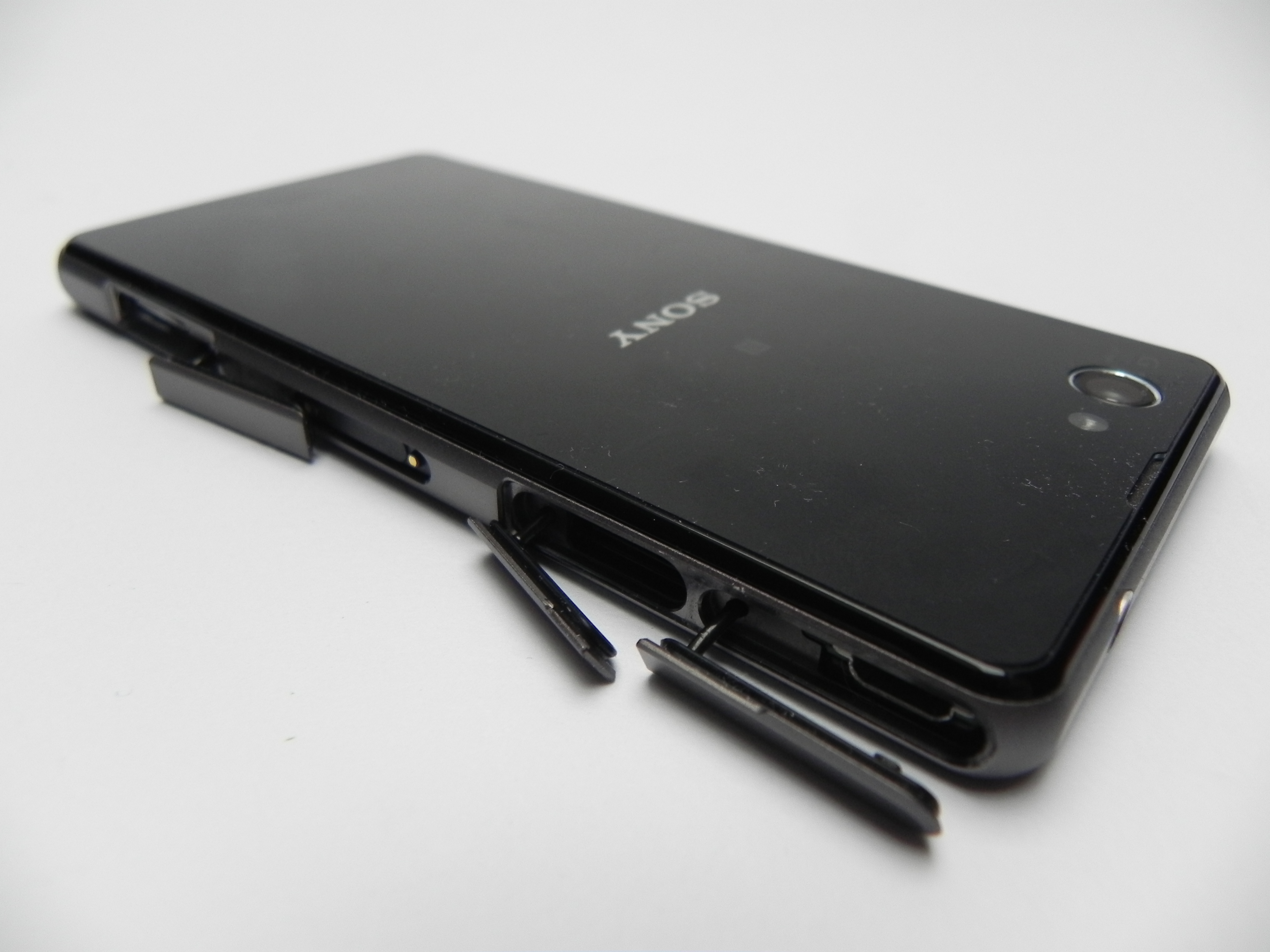 The smartphone measures 9.5 mm in thickness, weighs 137 grams, so it’s not one of the thinnest or lightest phones out there. It’s actually quite bulky and often times it feels like a bigger iPhone of sorts. This is a bulky, but compact phone, one that keeps the same design as the Z1, but smaller. It has a glass back and front and it uses a waterproof and dust proof case. That’s signaled by the lids applied on top of its ports and slots.