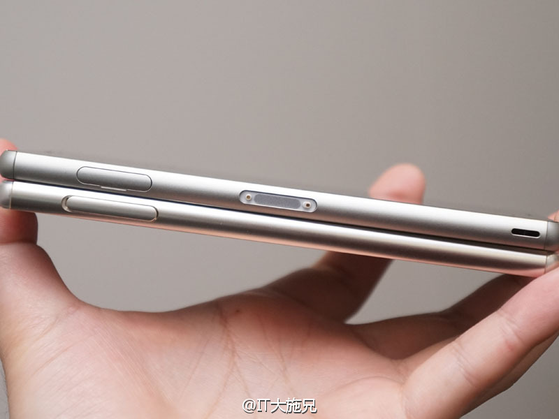 Since we already saw renders, it’s time to have a look at actual hands on images, some of them even including comparisons with the Xperia Z3. The newcomer measures 6.9 mm in thickness and weighs 144 grams. It keeps the 5.2 inch diagonal and Full HD resolution, but this time it’s a bit narrower and its microUSB port has been moved from under the flap on the side, to the bottom, without a cover.
