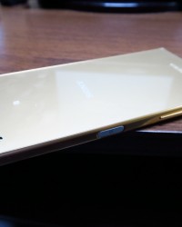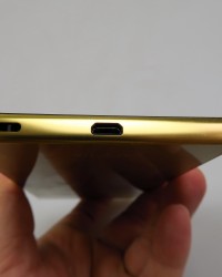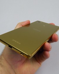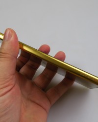 We’re dealing with a 5.5 inch handset, that measures 7.8 mm in thickness and weighs 181 grams. This means it’s 0.5 mm thicker than the iPhone 6S Plus, but also 11 grams lighter. It looks like a gold bar and it’s quite a long phone, also quite massive and slippery. One hand usage is out of the question, but this remains an elegant piece of work. It’s 30 grams heavier than the Sony Xperia Z5 and it comes with a metal frame and a reflective glass back.