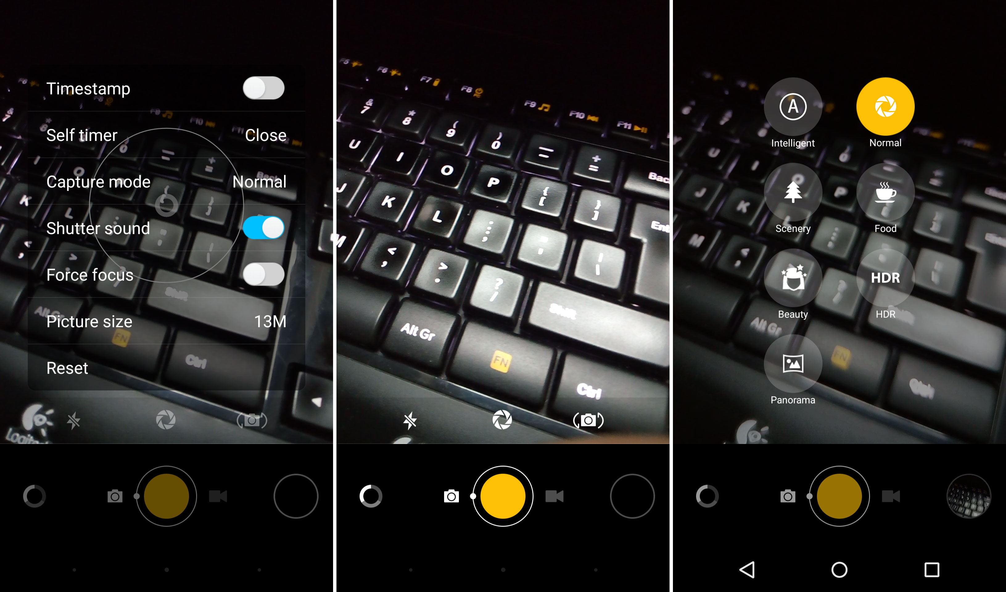 Capture Modes are as follows: Normal, Food, HDR, Intelligent, Scenery, Beauty, Panorama. There are also many sub-options for all those modes, basically filters/effects. We started off the camera test with an indoor gallery, where we found that it was rather hard to focus on the hamburgers we photographed, not because of the cravings, but rather the camera itself didn’t focus properly in closeups.