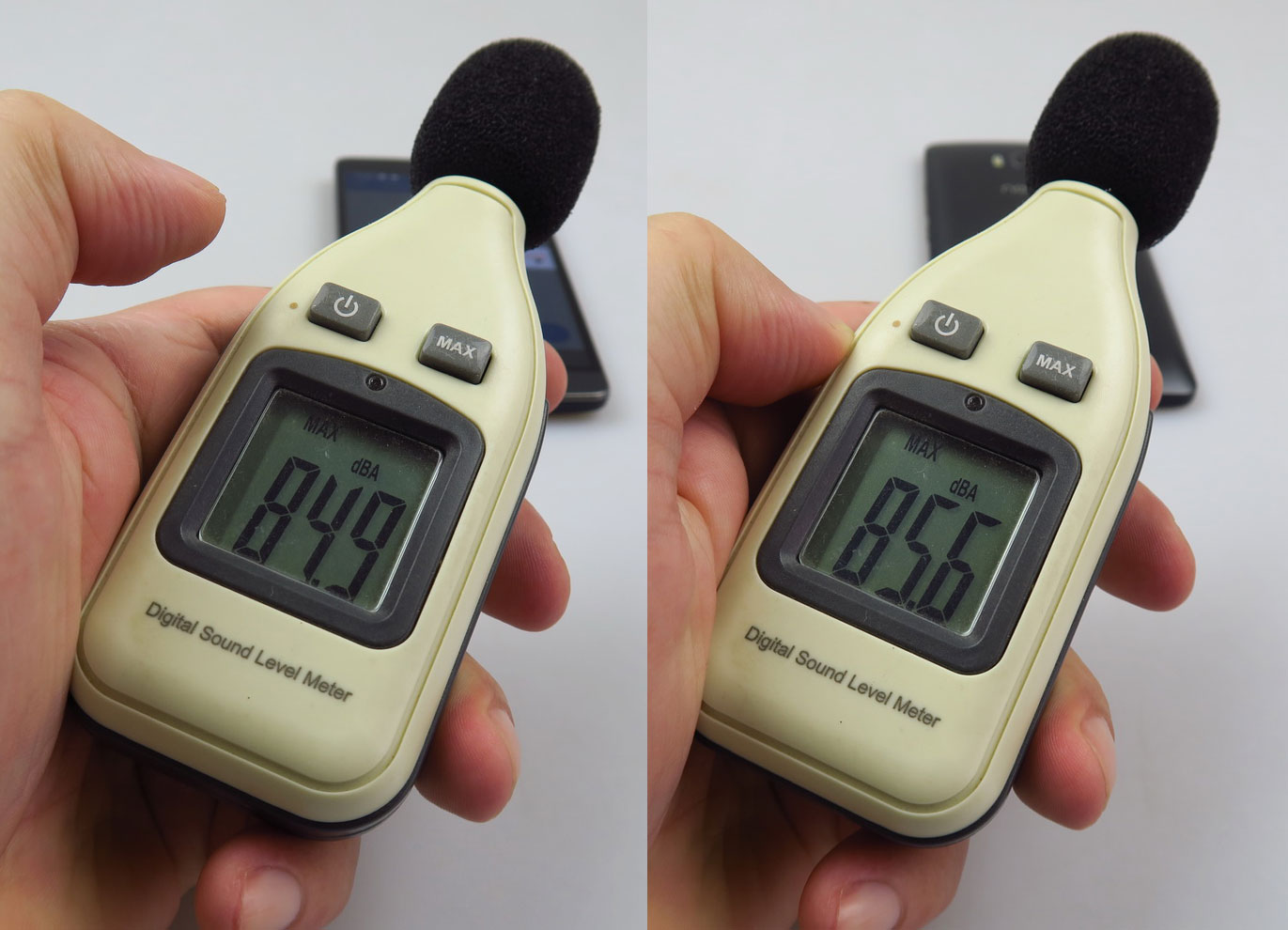 At least there was no big muffling on a flat surface. We then proceeded to do a decibelmeter test, achieving 84.9 dBA at the front and 85.6 dBA at the back. This is quite loud and pretty much on par with the Galaxy Note 4, so not bad. It also surpasses the Galaxy S7, in loudness. The headphones remind me a lot of the iPhone 3GS ones, they’re made of plastic and have a wire that tangles easily.