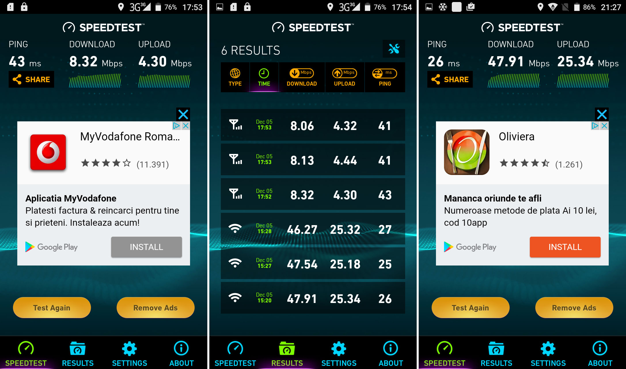 We also tested the virtual keyboard, a stock one in this case and proceeded to analyze the connectivity. This is a dual SIM phone with dual standby, using micro SIM card slots. There’s a microUSB port on board, 3G connectivity tops, WiFi 802.11 b/g/n, Bluetooth 4.0, GPS and the calls have OK clarity, mid level volume and OK signal. There’s a not so good noise cancelling and the SpeedTest we did revealed a download speed of 8.3 Mbps via 3G and 4.4 Mbps in upload speed. The WiFi testing revealed a value of 47 Mbps in download and 25 Mbps in upload, which are just OK results, no record being set here.