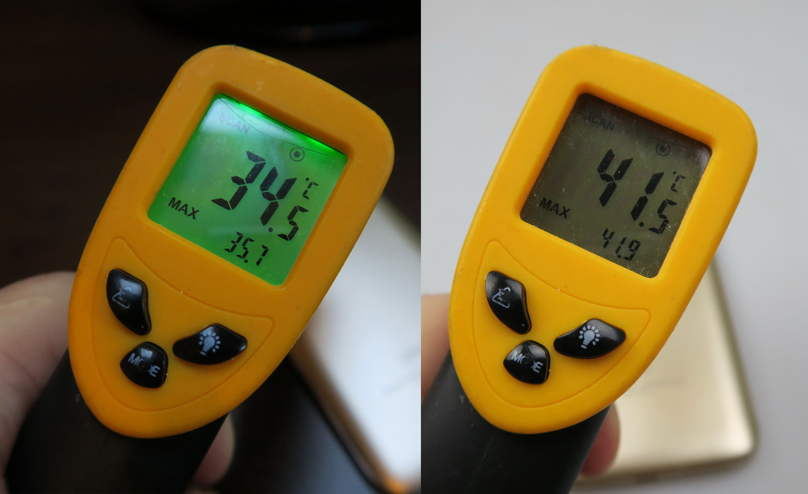 In 3DMark Ice Storm Unlimited we were among the bottom 13 models, so the graphical abilities aren’t very mint here. It’s no race horse, that’s for sure. We also did a temperature test and achieved 35.7 degrees Celsius after running GFXBench and 41.9 degrees after running Riptide GP Renegade, so there’s a bit of overheating here. Time to see how the battery does!