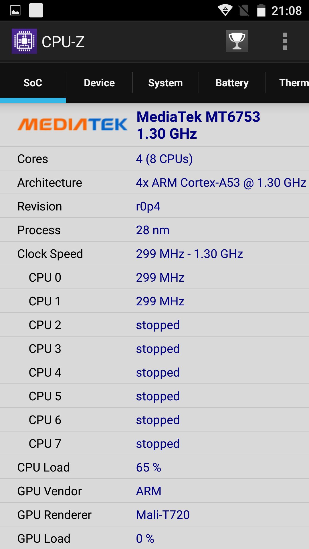 Settings for the screen include brightness, adaptive brightness, LED options, font and rotate screen. The bezels are quite big and overall it’s an OK screen considering the price and basically it has no flaw and comes with good brightness. Moving on to other hardware, the Ulefone Power has a 64 bit octa core MediaTek MT6753 processor, clocked at 1.3 GHz and there’s a Mali T720 GPU in the mix, as well as 3 GB of LPDDR3 RAM.