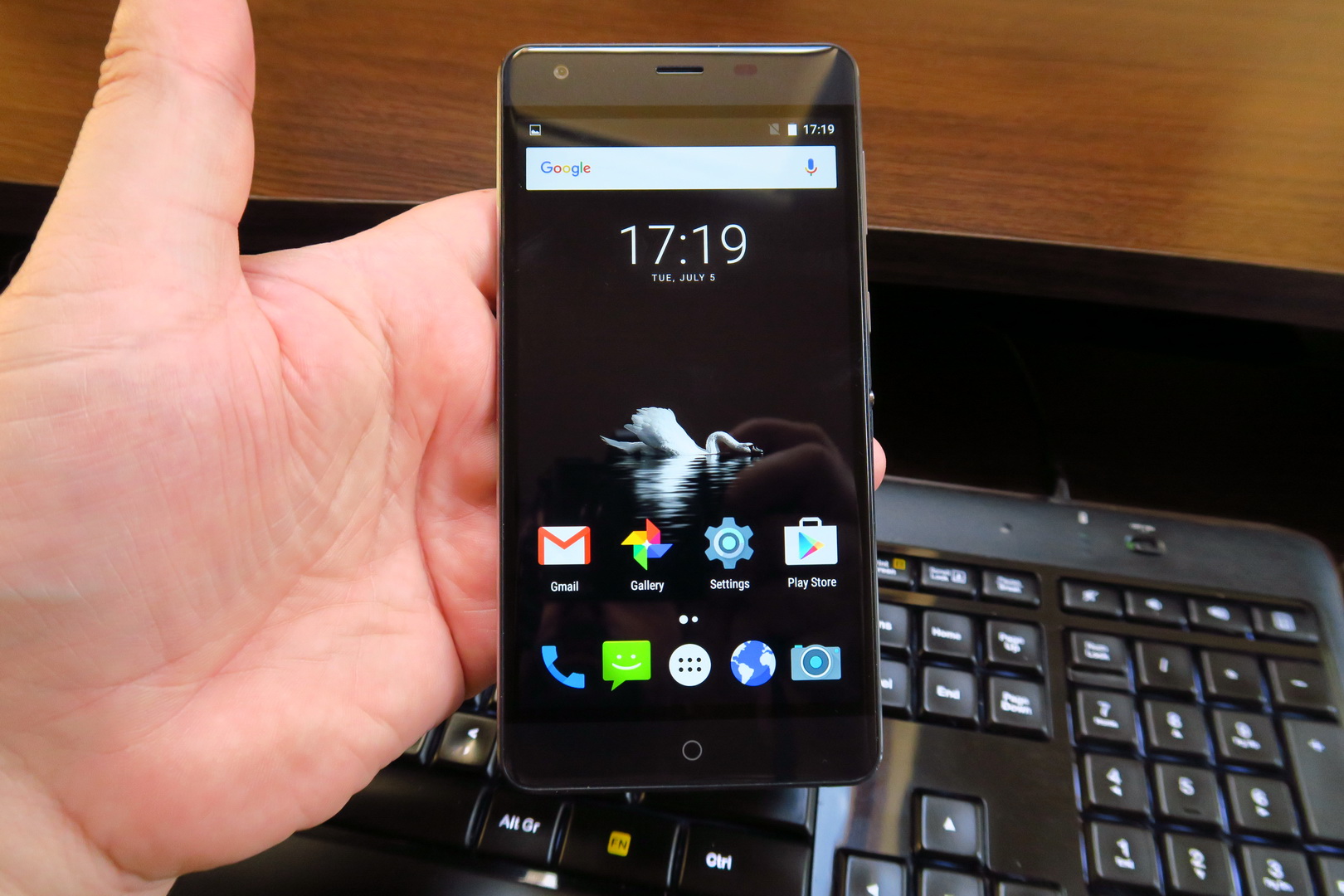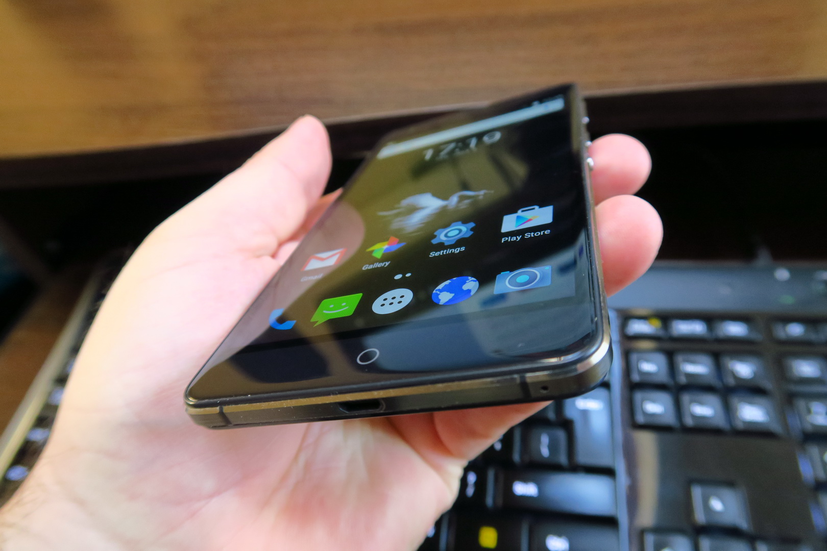 The phone weighs 190 grams, so it’s also lighter than the ASUS ZenFone Max (202 grams). Continuing with comparisons, the Ulefone Power is still thicker than the Gionee Marathon battery phones. This model feels solidly built and comfy in the hand, in spite of the size. Available in blue, white or wooden, the battery phone has a non removable back panel and needs a metal key to access slots.
