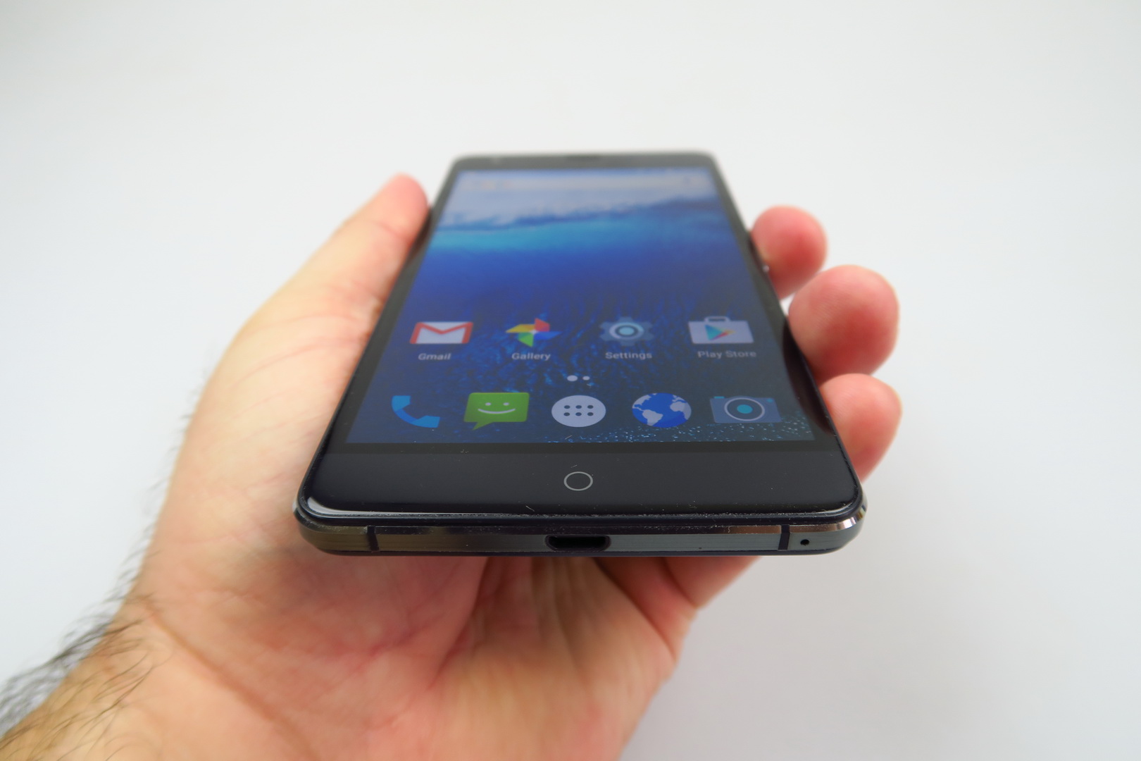The back edges feel slightly curved and we also noticed the presence of an extra physical button, used to take camera shots. In the end this is a comfy phone, in spite of being massive and it has a solid build. Now let’s see what the display offers. It’s a 5.5 inch Full HD LTPS AUO/IPS LCD panel with 2.5D glass and Gorilla Glass 3 protection.