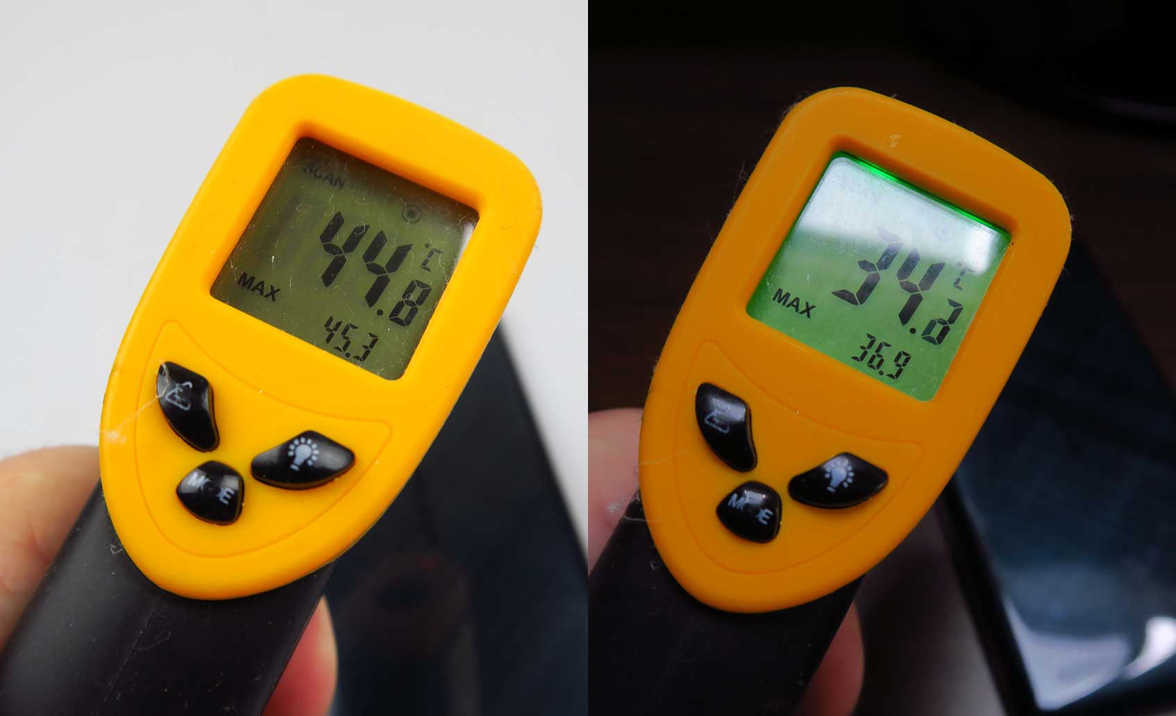 In 3DMark Ice Storm Unlimited, we got a bit past the UMi Touch handset. Interestingly, the GeekBench 3 multi core test result was above the one of the iPhone 6. The temperature tests feature a first run after GFXBench, with just 36.9 degrees, so that’s OK, plus another run after playing Riptide GP2 for 15 minutes, reaching 45.3 degrees Celsius, so serious overheating.