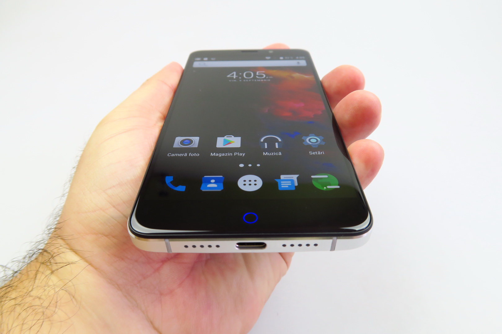 The phone is made of aluminum and measures 8.5 mm in thickness, plus it weighs 200 grams. Some retailers mention 185 grams, but I tend to believe it’s higher. Upfront we’ve got a pretty 2.5D panel and the device comes with a solid build and a back side that has a “satin” feel. It’s a comfy phone, in spite of the weight and it also brings a slightly rounded back.
