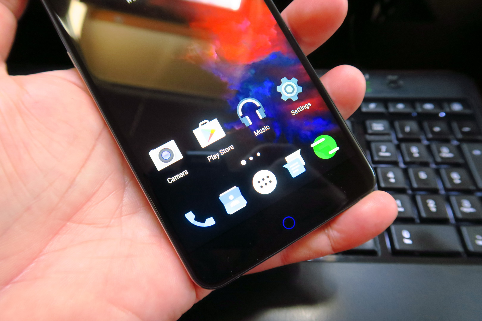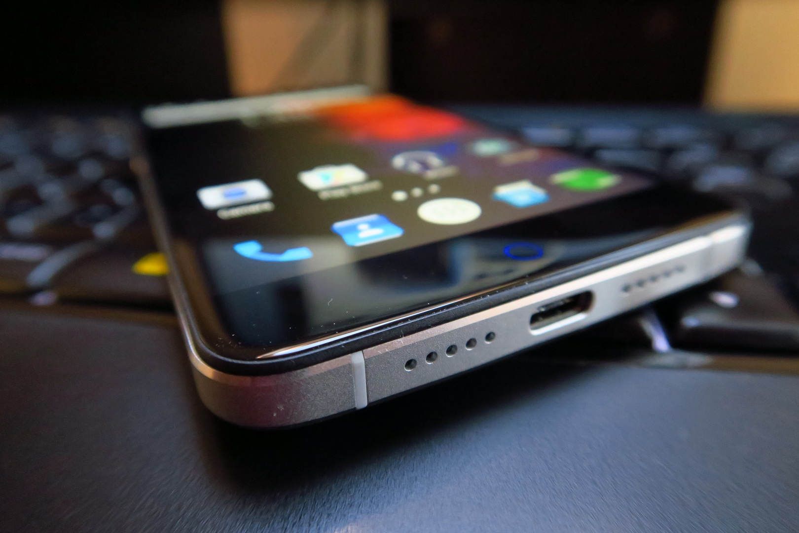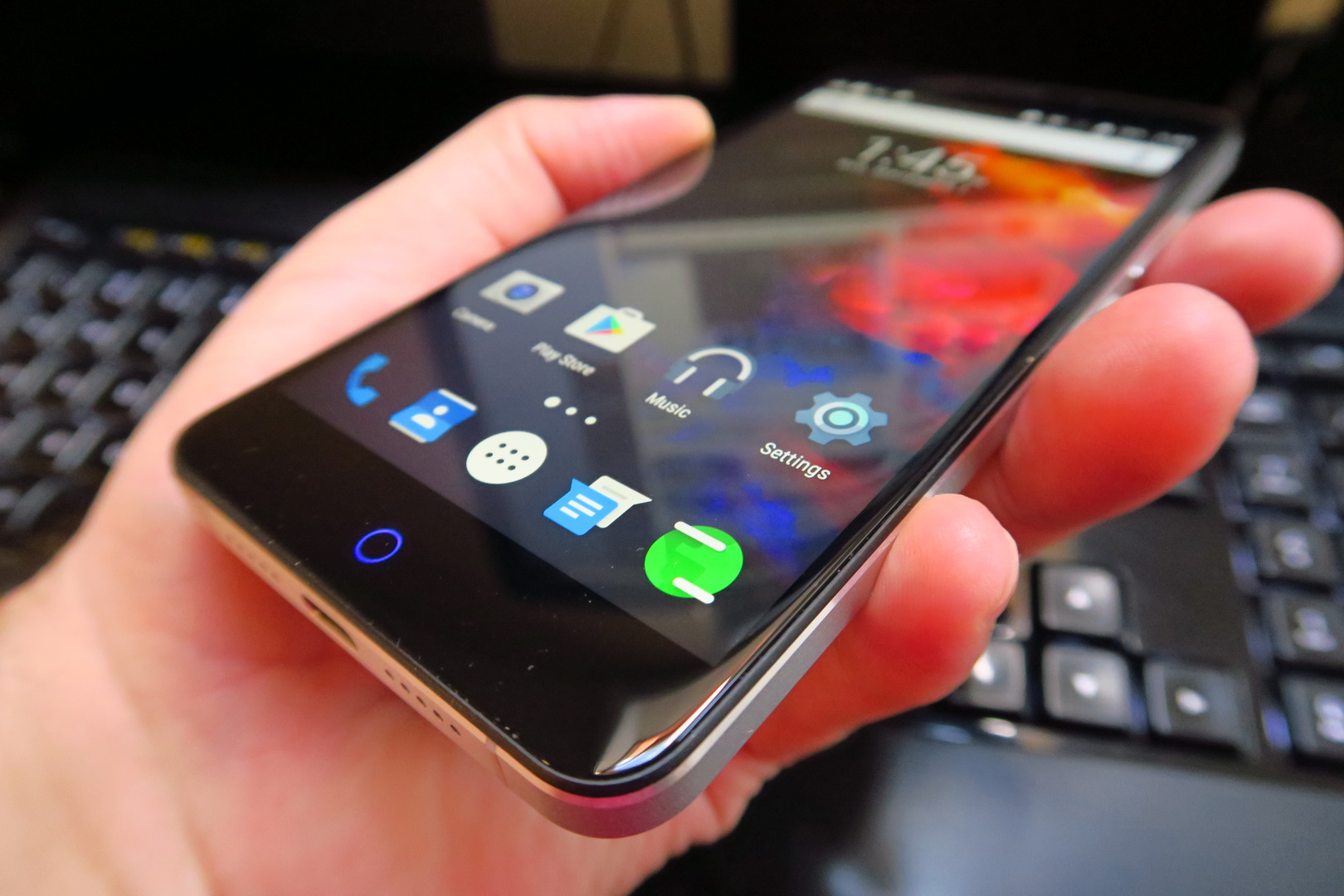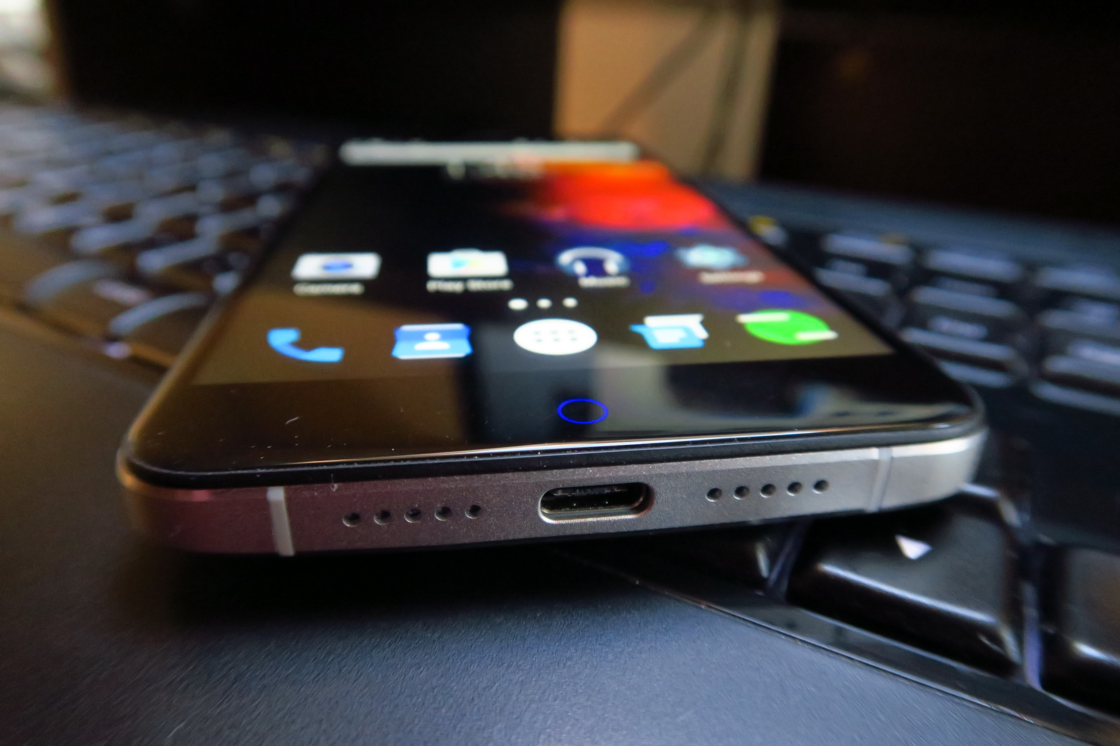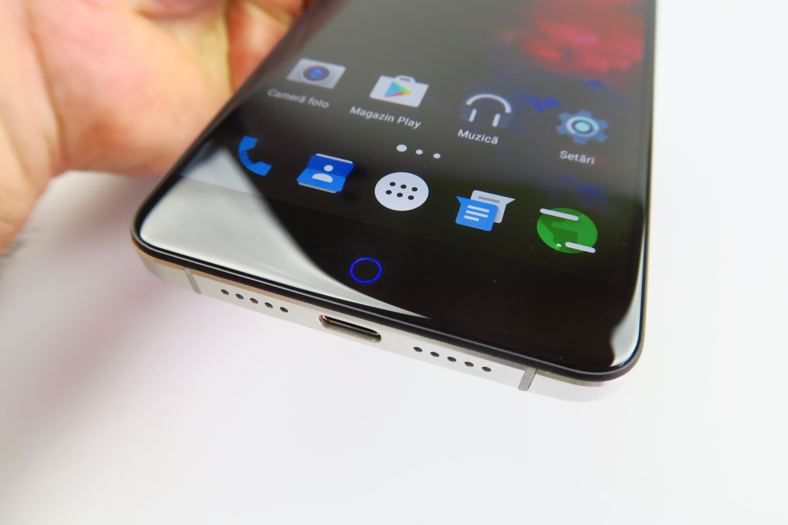 Buttons are comfy and one hand usage is pretty OK. The facade is prettier than the iPhone’s, you better believe it, especially with that breathing light. It’s a nice but heavy phone and the Home button is a bit controversial, reminding me of the one seen on ZTE Nubia and Meizu phones. The display on offer here is a 5.5 inch unit made by Sharp, an IPS LCD with Full HD resolution and 2.5D approach.