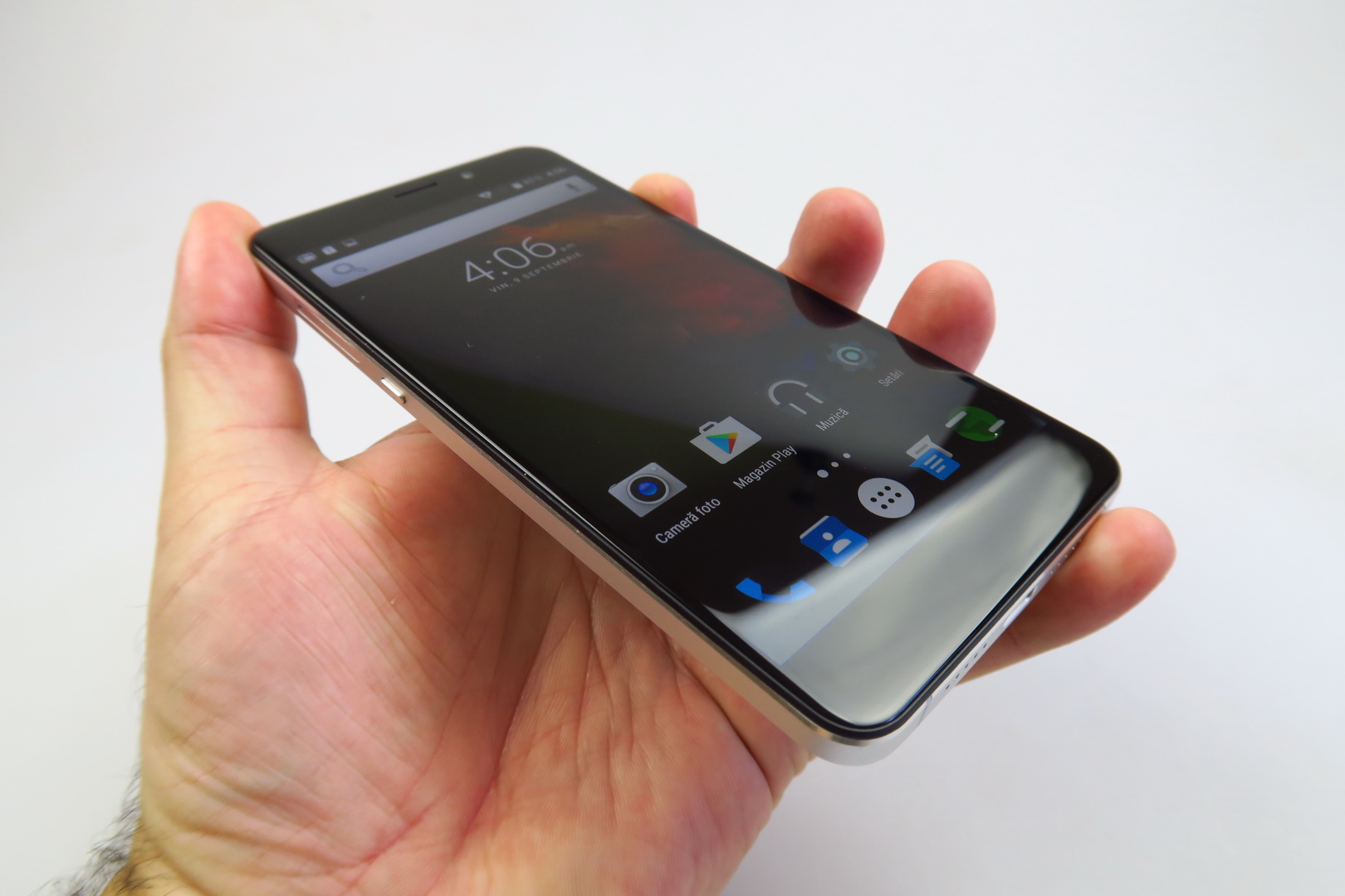 Announced in August, the handset comes in gold or silver and it uses Sharp, MediaTek, Samsung, Panasonic and Sony technology. We’re dealing with a 5.5 inch phablet here, a big and heavy machine that stands out through the “breathing light” thingie, a capacitive Home button/ LED light for notifications. You can actually use it as a button if you activate that feature from the Settings and flanking it are two hidden capacitive buttons.