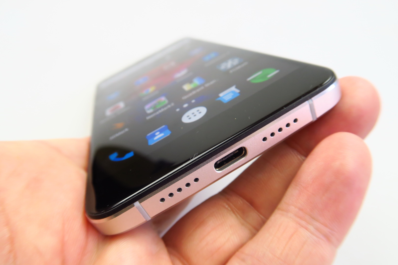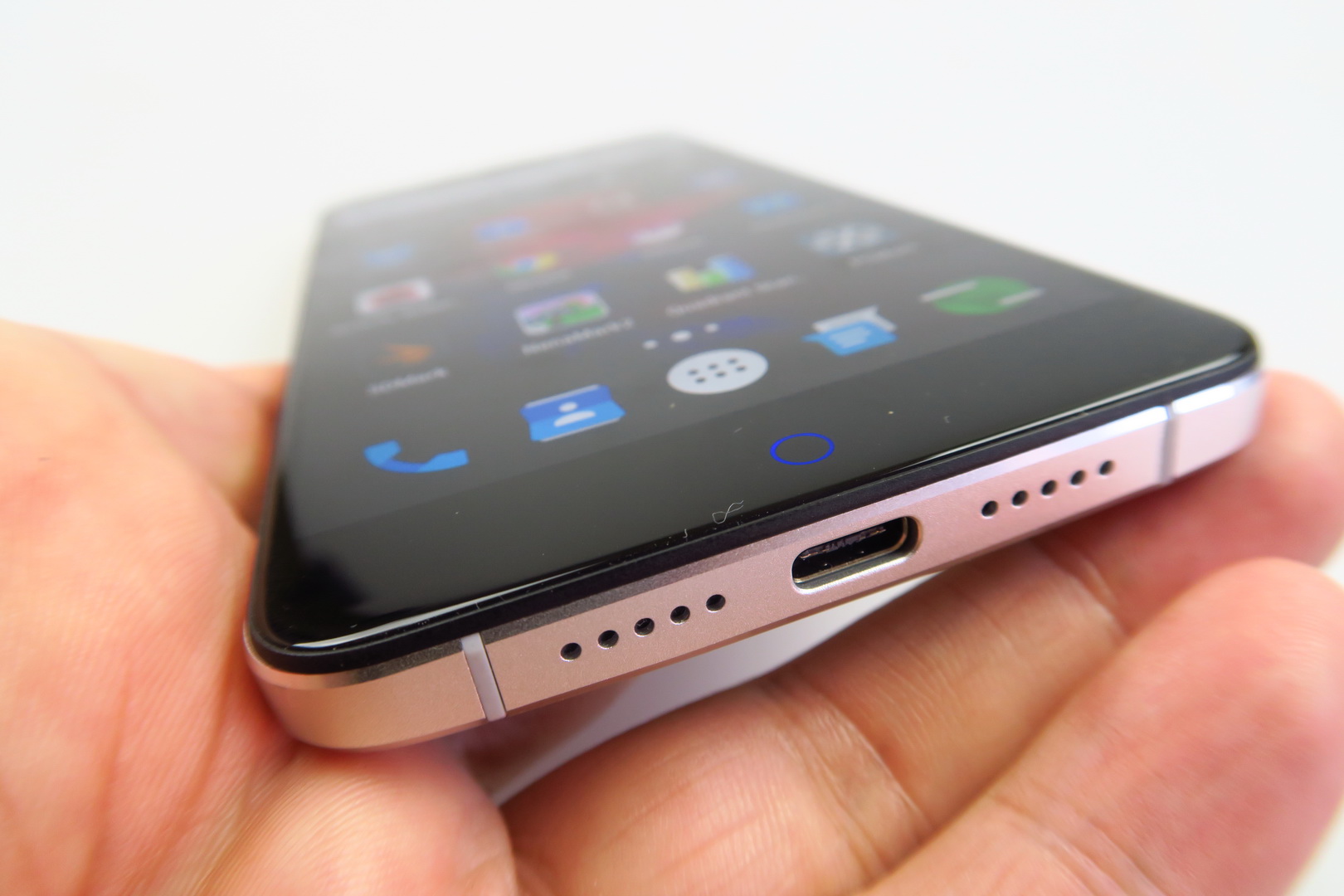 Now let’s discuss the acoustics. The device comes with HiFi+ audio and promises clear vocals, deep bass, BES Atmos and Smart PA tech. It doesn’t have bundled headphones and only the right grille at the bottom hides a speaker. Interestingly it’s impossible to muffle the lower area and cover up the sound somehow, no matter what you do.