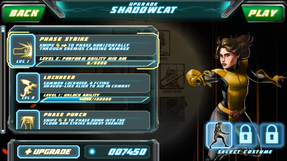 We’re dealing with an action platformer, that features the iconic X-Men, including Wolverine, Shadowcat, Colossus and more. This is a side scrolling game, made by Glitch Soft and there are two good things about it: there are no in app purchases and it doesn’t require an online connection to play. Each character has a bunch of powers that you can activate or upgrade with the XP points you gain.