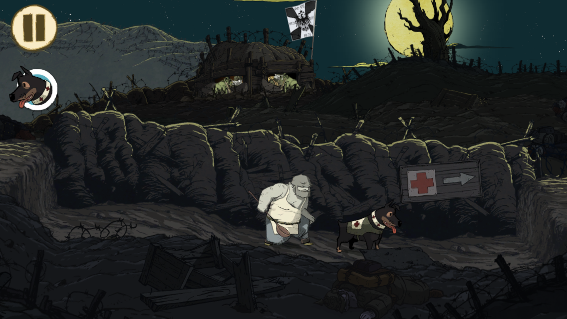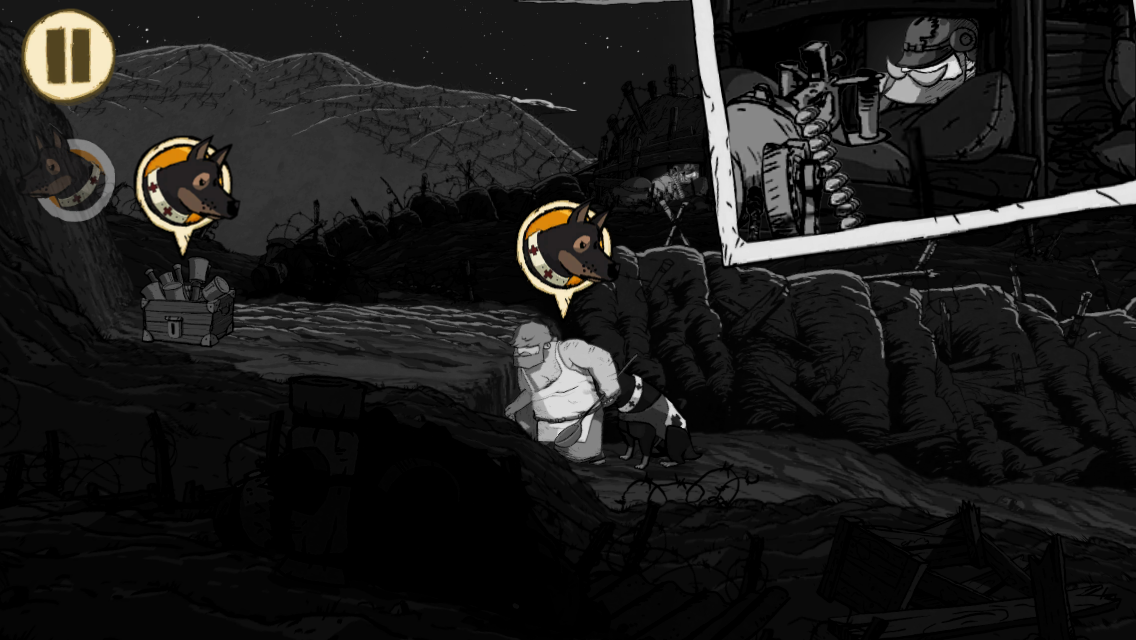 Emile is on the French side and teams up with Freddie, an angry afro american man, who becomes likable as the adventure goes on. There’s also Anna as a playable character, a Berlin student and nurse, plus Karl. You will also have control of a German dog, who will aid you by bringing dynamite to you or pulling levers. The background music is great and there are even controversial themes included, like the use of chlorine gas, causing a lot of deaths.
