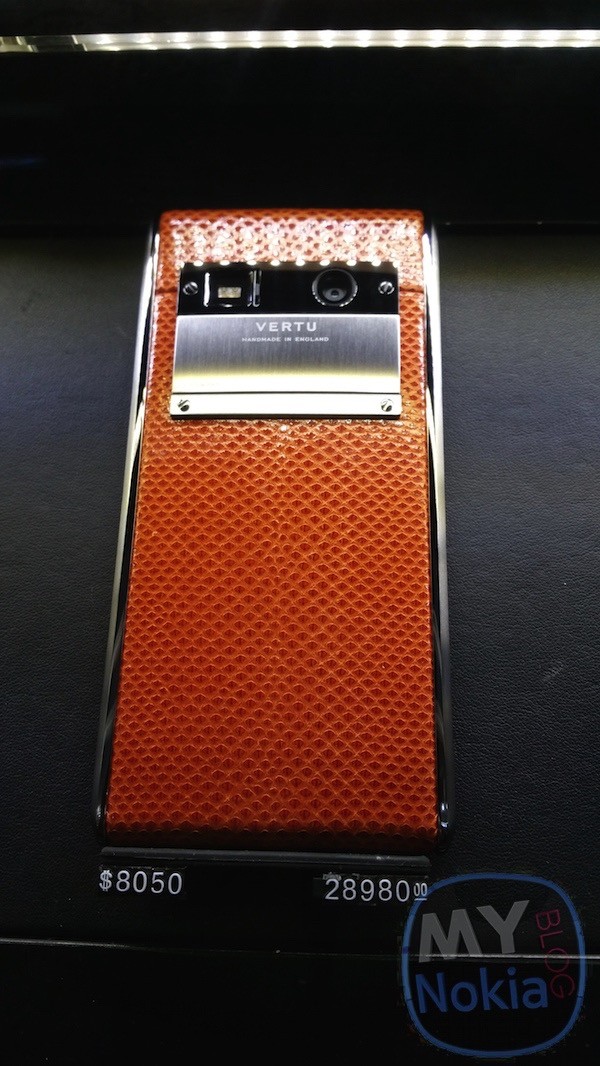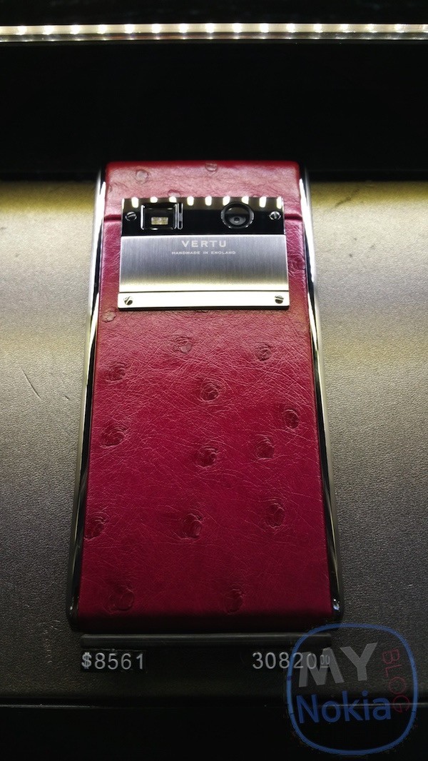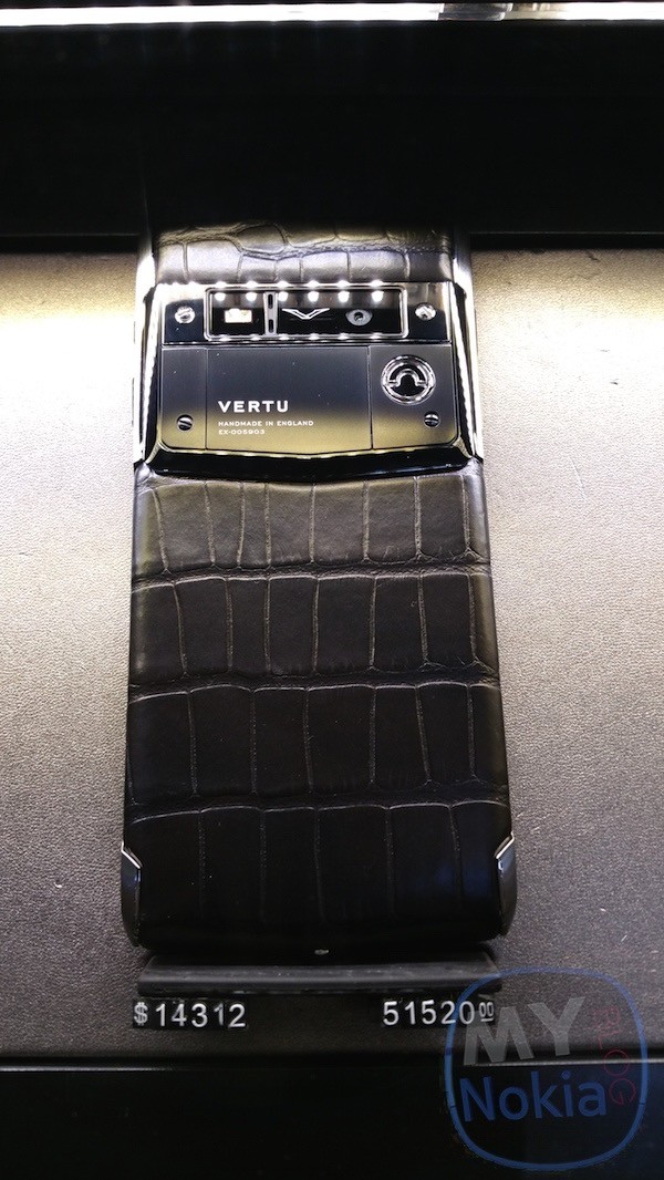 I have to say that the Vertu booth from the airport is rather small, but still elegant and offers some pretty interesting handset models. Prices start at $6000 and go north of $20k for some models. We’ve got phones with titanium cases here, sapphire glass and crocodile leather. There are special sewings applied and these models are hand crafted in England.