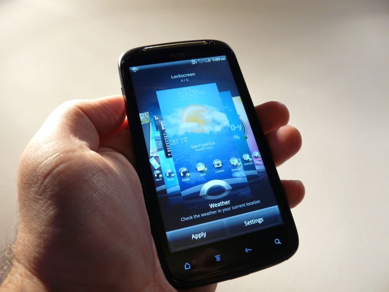 Sensation uses an 8 megapixel camera with autofocus, dual LED flash, geotagging, touch focus, image stabilization and support for 1080p 30 fps video capture. Stereo sound recording is also on board. Android 2.3 runs on the device with HTC Sense 3.0, that looks very hot with its next-gen transitions, 3D effects and possibilities of customization. You can even customize the Lock Screen including social networking aspects in it, so you will see tweets and Faceobok updates floating around in 3D.
