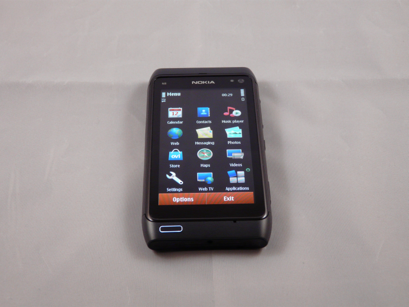 Moving on to the hardware, we must mention that the build quality of the device is simply great, which is typical for Nokia. The handset looks and feels great in the hand and its brushed metal surface is quite elegant. The N8 comes with a 3.5 inch multitouch display, 16GB of internal memory, 256MB RAM, a microSD card slot, HSDPA, WiFi and Bluetooth 3.0.
