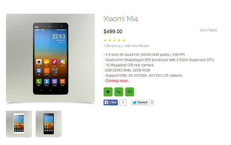 Xiaomi Mi4 will also pack a 5.5 -inch Quad HD display with a 538 ppi pixel density, a quad-core Qualcomm Snapdragon 805 processor clocked at 2.5 GHz, 3 GB of RAM, 32 GB of internal storage, a 16-megapixel main camera, a 5-megapixel front-facing camera, 3G and Global LTE support.